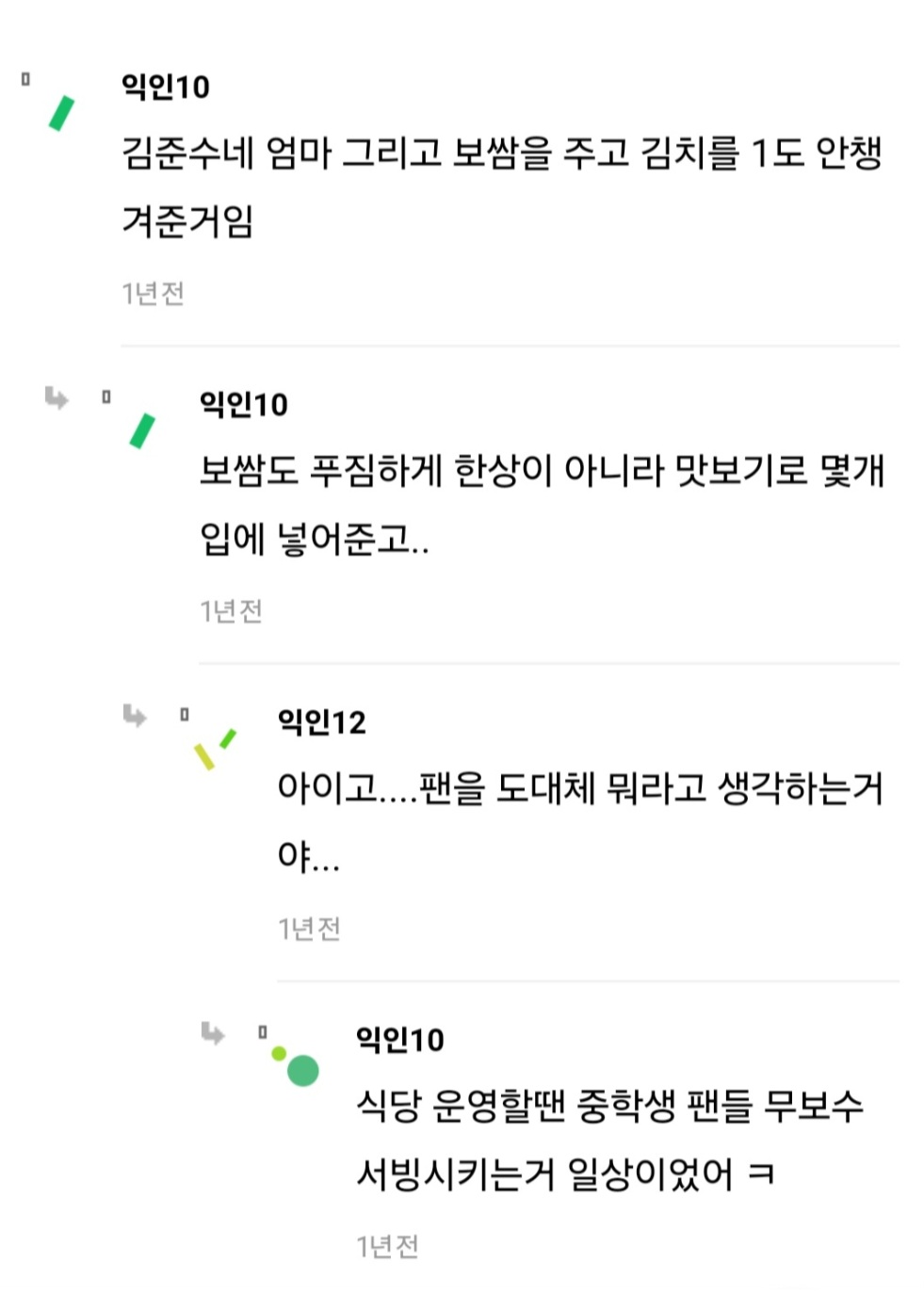 식당에 중학생 팬들 무보수 서빙시켰다고 함ㅋㅋ