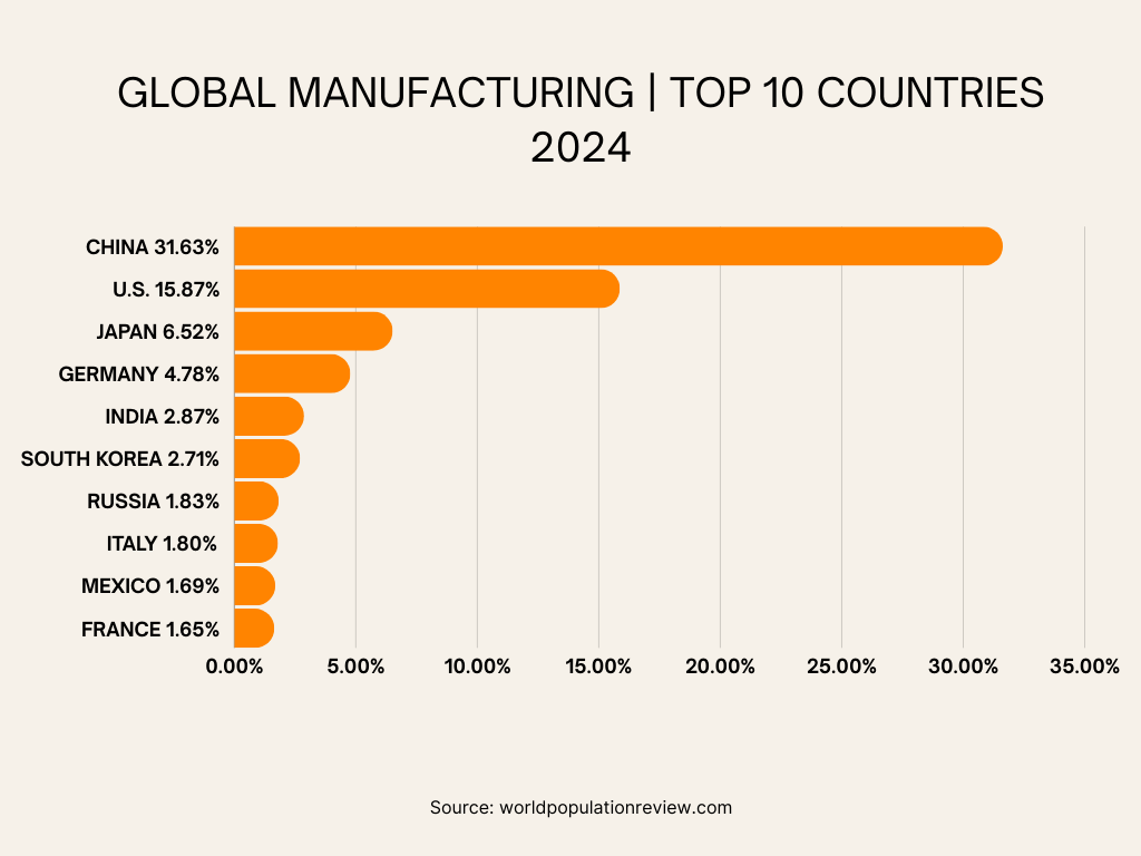 즉 1위가 모든걸 다 해쳐먹는 구조. 반대로 제조업은 아무리 패왕 중국이라도 31% 정도.