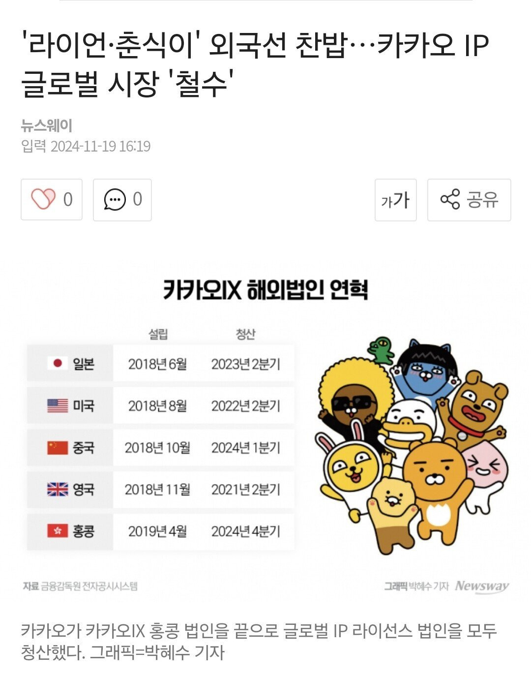 [ 세계 시장 모든곳에서 철수한 카카오 IP 라이선스 법인 ]