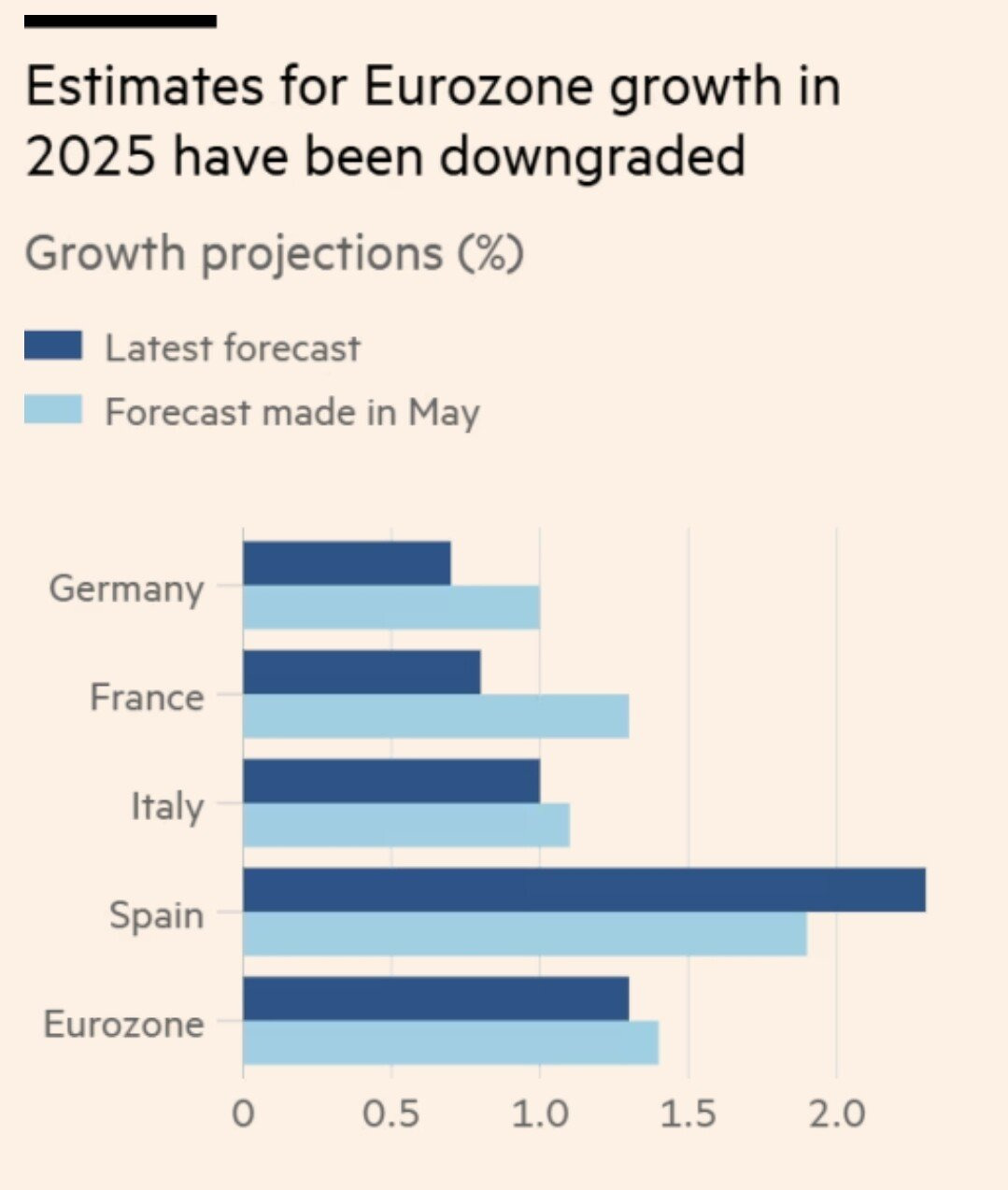 IMF 도 위에서 말한 이유들로 유로존의 2025년 성장률을 하향.