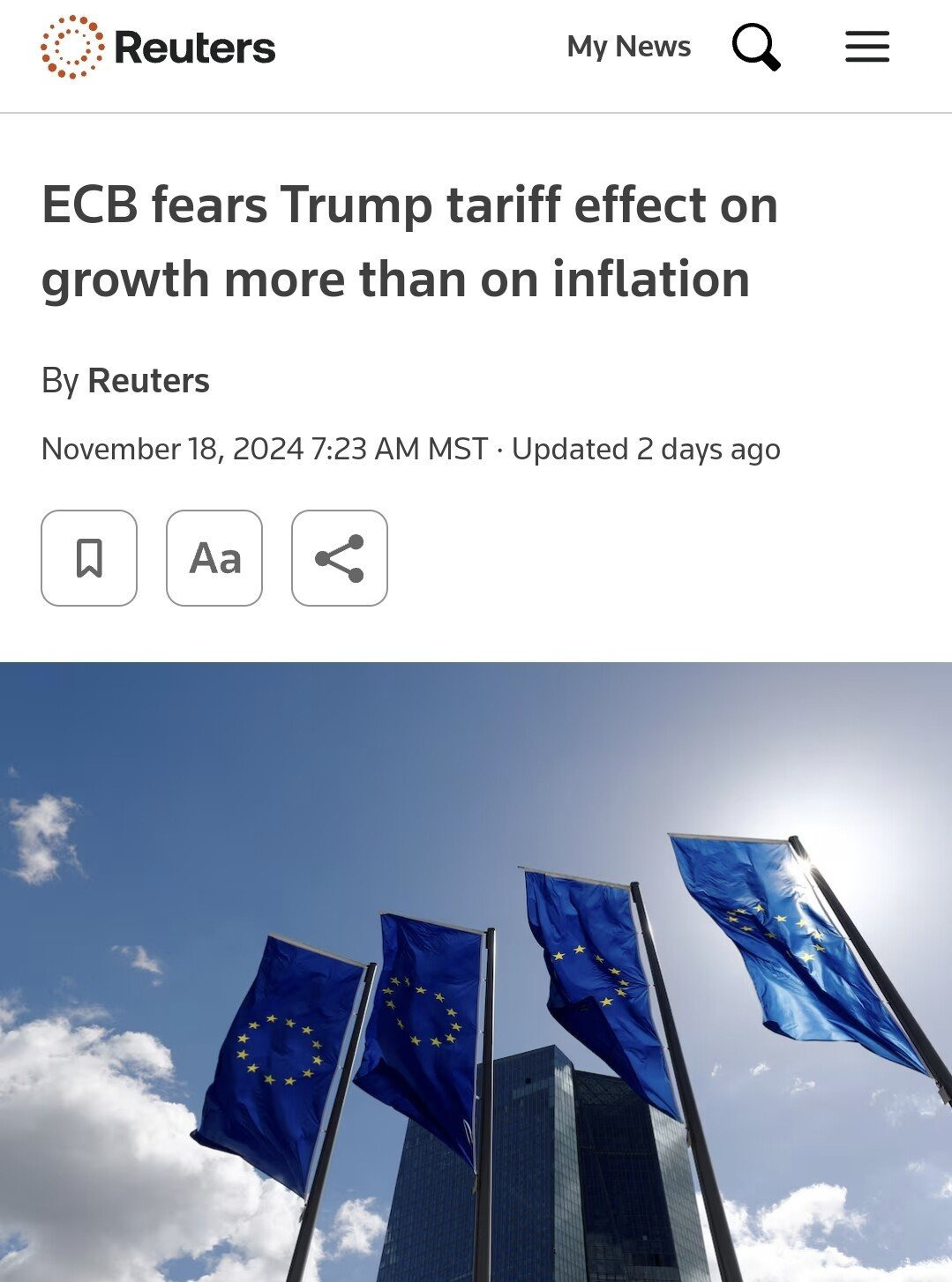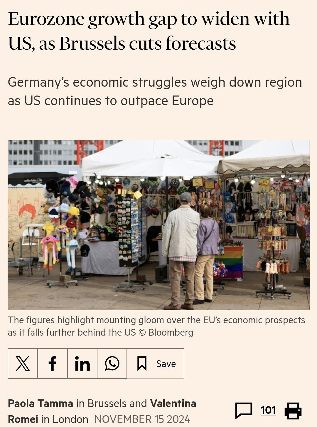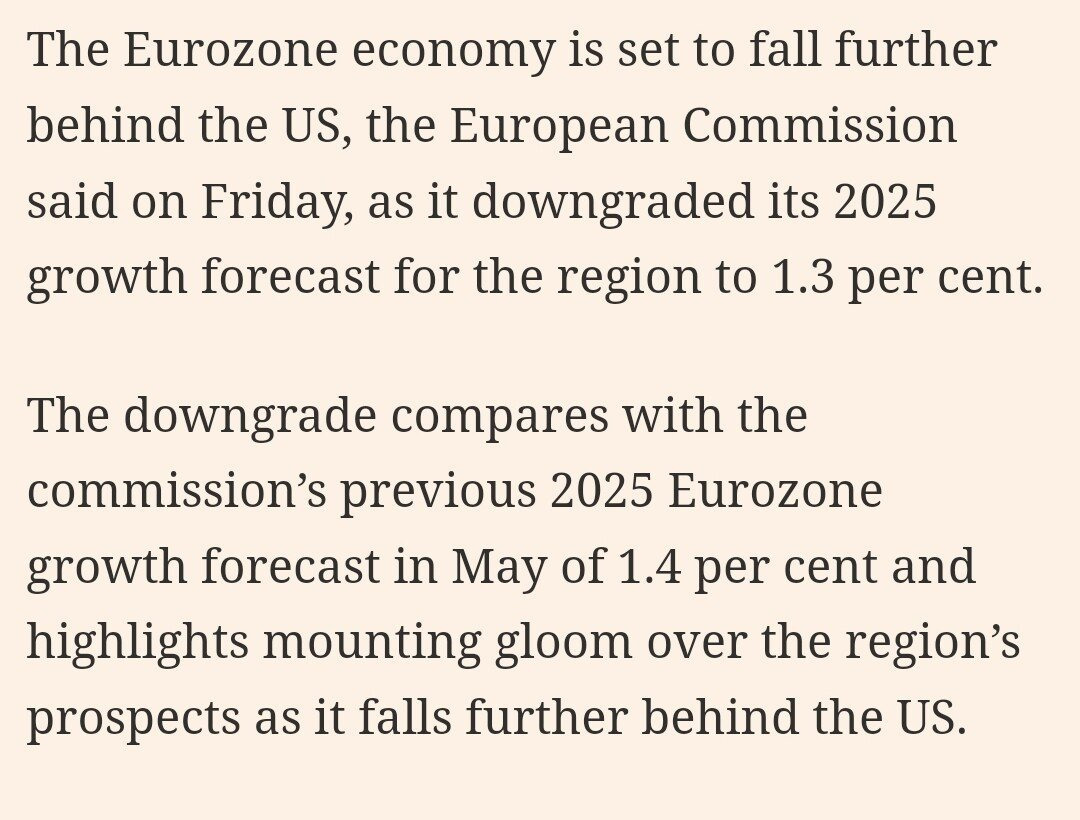 1. 유럽연합에서 최신 발표한 통계에서 2025년 유럽 성장률을 더 하향했는데 이는 유럽 최대 경제인 독일 프랑스 상황이 안좋기 때문.