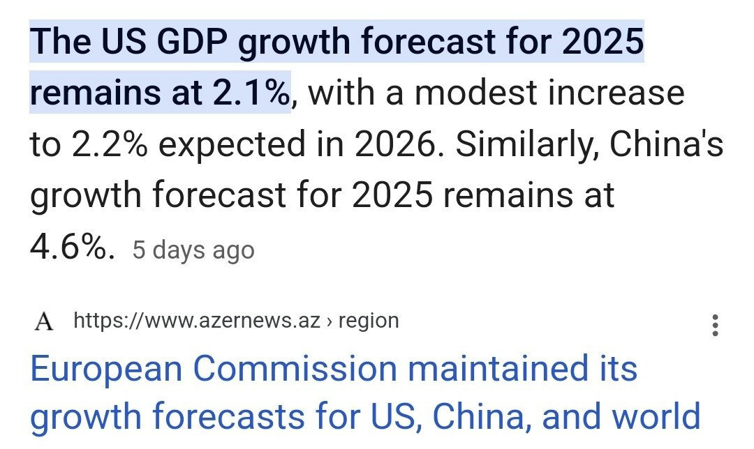 유럽집행위원회가 예측하길 미국은 2025년 2.1%, 2026년 2.2% 성장할거라 함.