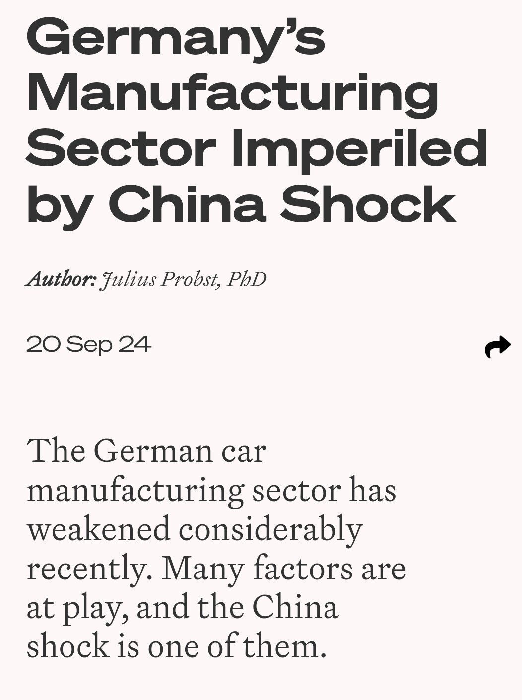 유럽 경제를 견인하는 독일이 외국, 특히 세계 최대 제조 대국인 중국에 밀려서임.