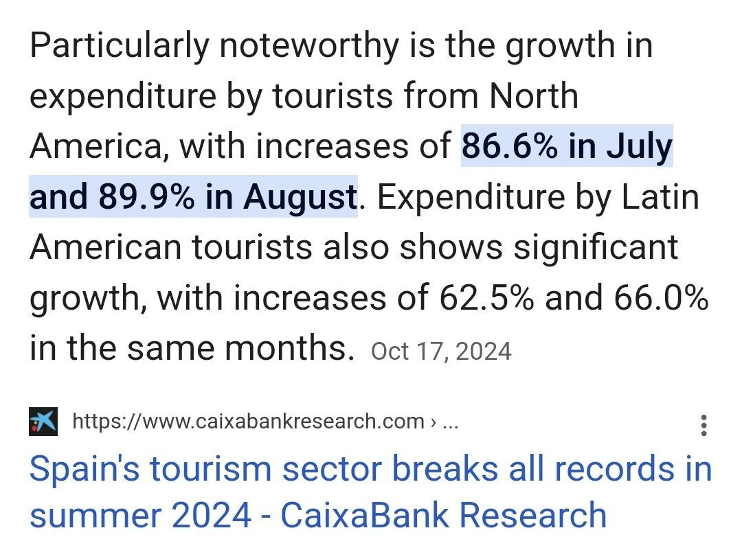 돈 많은 미국인들이 날씨 좋고, 이국적이며, 식문화 뛰어난 스페인으로 관광을 대거 가는중