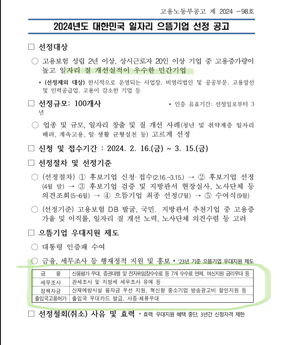 일자리 으뜸기업은 어떤 기업이 선정될까?