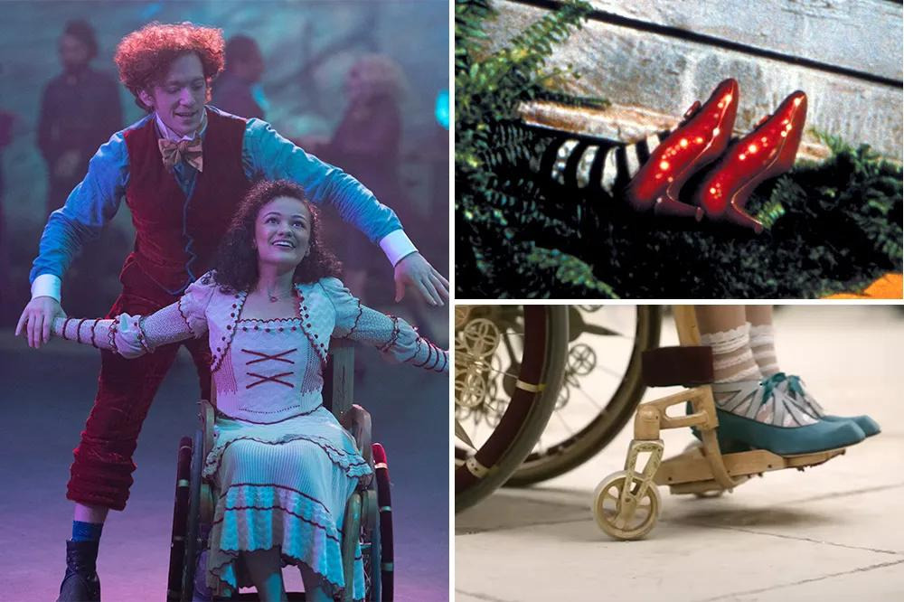 엘파바의 여동생 네사로즈(나중에 동쪽의 사악한 마녀가 됨)는 훗날 도로시가 신게 되는, 보석으로 장식된 은색 구두를 선물로 받는다. <위키드>의 의상 디자이너 폴 타즈웰은 캔자스에 살던 도로시를 오즈의 나라로 데려온 회오리바람을 연상시키는 디테일을 구두 뒤꿈치에 추가했다. 많은 사람들은 도로시의 구두하면 빨간 구두를 떠올릴 텐데, 빨간 구두는 1939년 영화에 나왔고, L. 프랭크 바움의 <오즈의 마법사> 원작 소설에선 은색 구두였다. <위키드> 영화에서는 <오즈의 마법사> 영화에서 주디 갈란드가 신었던 상징적인 빨간 구두에 대한 오마주로 루비 케이스에 담겨서 나온다.