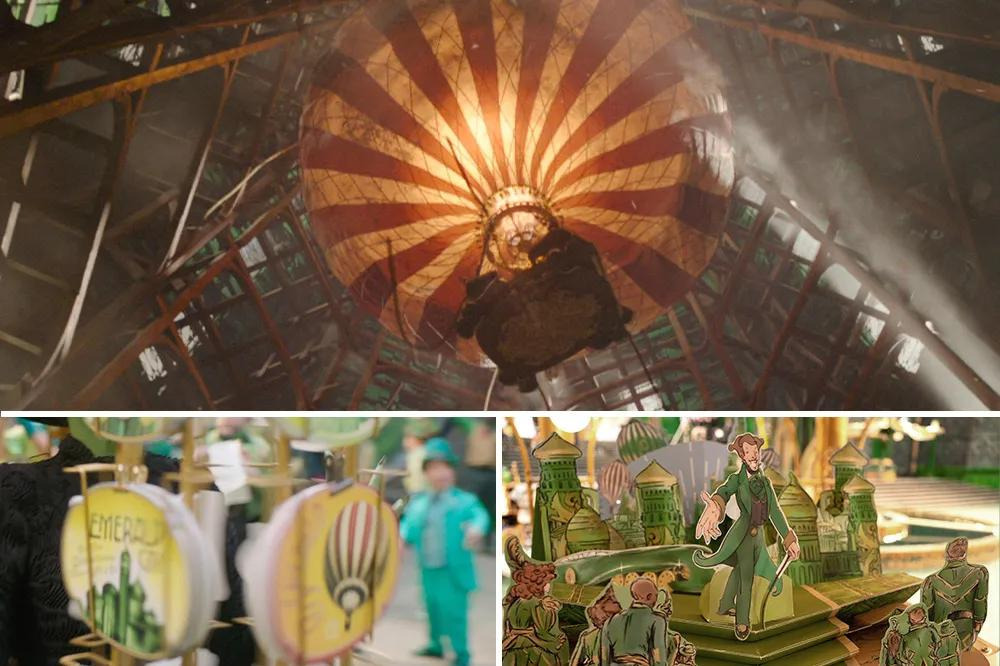 <오즈의 마법사>에 나왔듯, 오즈의 마법사는 열기구를 타고 여행하는 것으로 유명한데, 엘파바가 어린 시절에 읽는 동화책에 소개될 정도. 그밖에 영화 곳곳에 마법사와 열기구 장식이 함께 나오거나, 초대장을 전달하는 수단, 마지막 탈출씬에 등장하는 등, 열기구는 영화 곳곳에 등장한다.