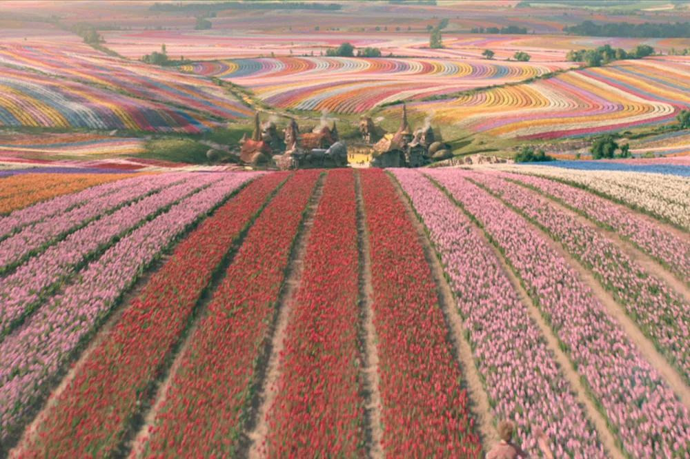 먼치킨랜드의 전경을 카메라가 잡을 때, 9백만 송이의 튤립이 무지개 색 패턴으로 오즈의 들판에 피어있음. (<오즈의 마법사> 주제가) ‘Somewhere Over the Rainbow’를 기념하는 의미.