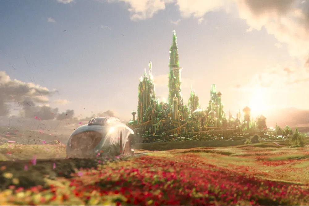 에메랄드 시티행 특급 열차를 구현하기 위해 실제로 32미터 길이, 58톤, 4.8미터 높이의 실제 세트를 지었다.