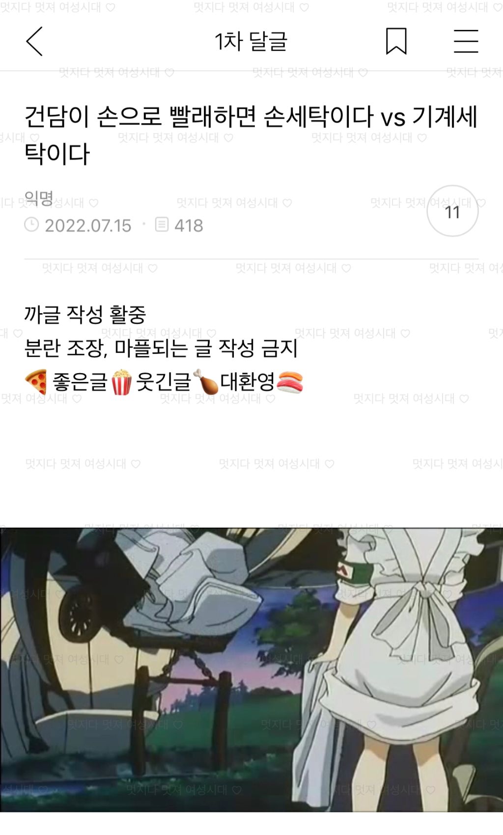 [스크랩] [흥미돋]건담이 손으로 빨래하면 손세탁이다vs기계세탁이다 작성자나프탈렌향|작성시간24.11.26|조회수6,231 목록 댓글 39 글자크기 작게가 글자크기 크게가 출처 : https://m.cafe.daum.net/subdued20club/VETW/48198?svc=cafeapp논란의 여지가 있는 듯 다음검색 스크랩 원문 : *여성시대* 차분한 20대들의 알흠다운 공간 현재 게시글 추가 기능 열기 북마크 공유하기 신고 센터로 신고 댓글 댓글 39 댓글쓰기 답글쓰기 댓글 리스트 작성자에이린빈 | 작성시간 24.11.26 기계 한 표 작성자북마크용 | 작성시간 24.11.26 미친사람이냐고 ㅋㅋㅋㅋㅋㅋㅋㅋㅋㅋㅋ 기계요. 작성자술이모질라 | 작성시간 24.11.26 기계 작성자부정왕 뻐킹 | 작성시간 24.11.26 ㅋㅋㅋㅋㅋㅋ존나 생각지도 못한 발상이닼ㅋㅋㅋㅋㅋ 작성자매니줠 | 작성시간 24.11.26 건담의 정성이 들어갔으니… 손세탁 댓글 전체보기
