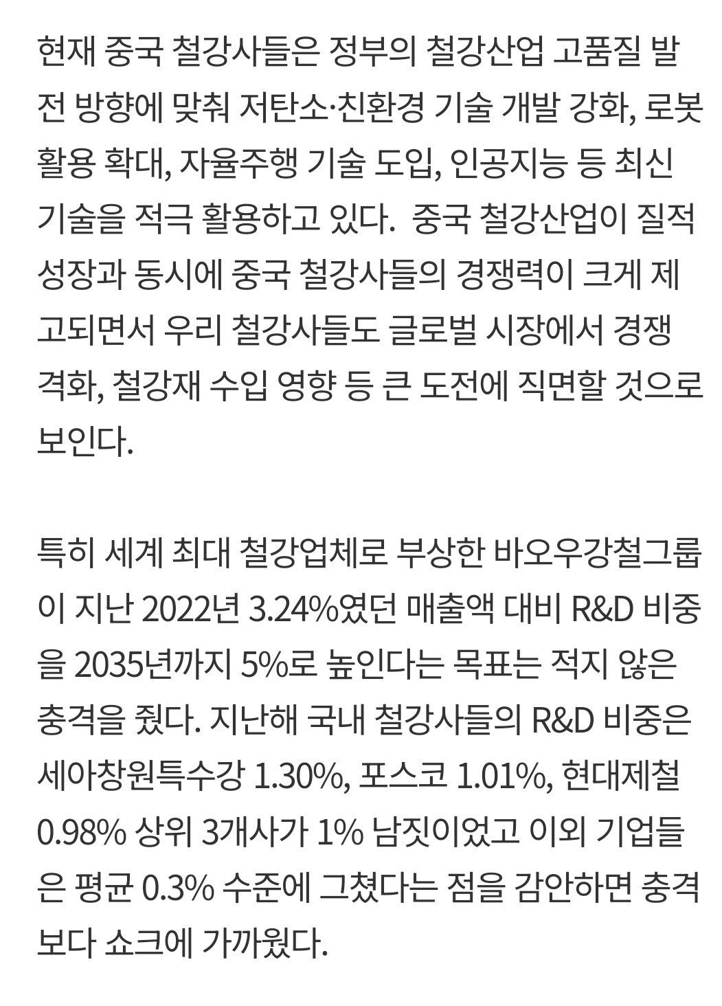 심지어 기술개발 투자조차 세계 철강업계 최고 수준이라 전세계 철강업계는 중국에 의해 고사중.