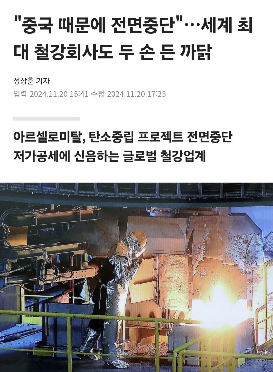 작성자파브스 작성시간 24.11.27 우리도 저래서 지금 문제라고... 포항에있는 현대제철 2공장은 문 이미 닫았음.. 포스코내부도 지금 심심찮음...
