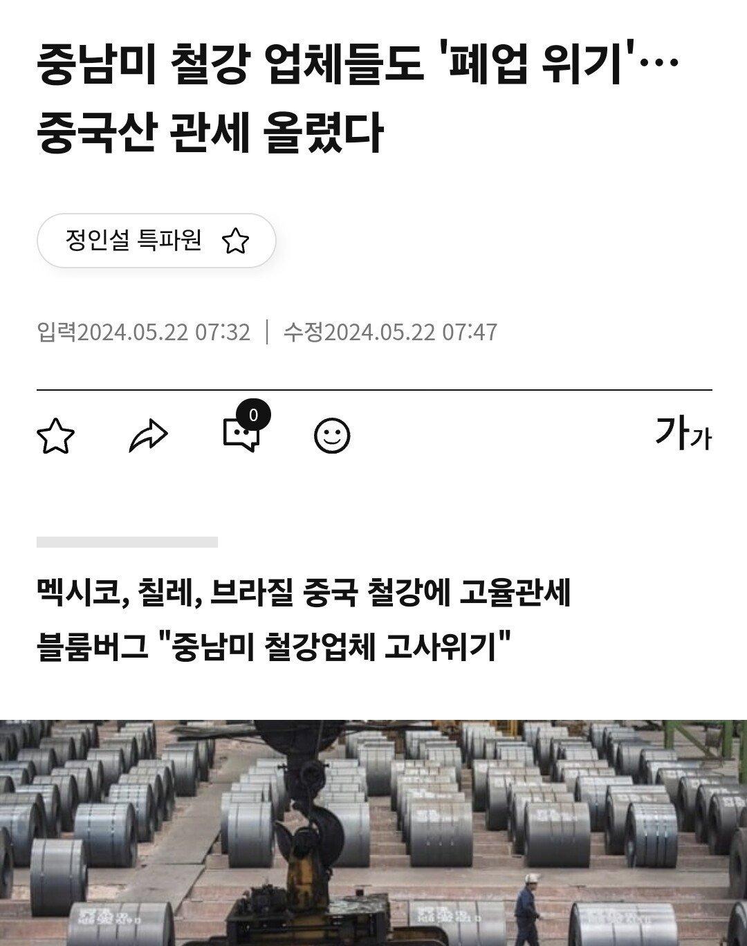 [ 친중 성향이던 멕시코 칠레 브라질도 중국산 철강에 관세 ]