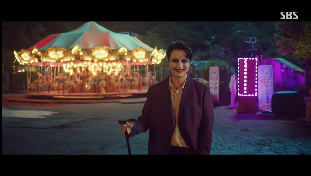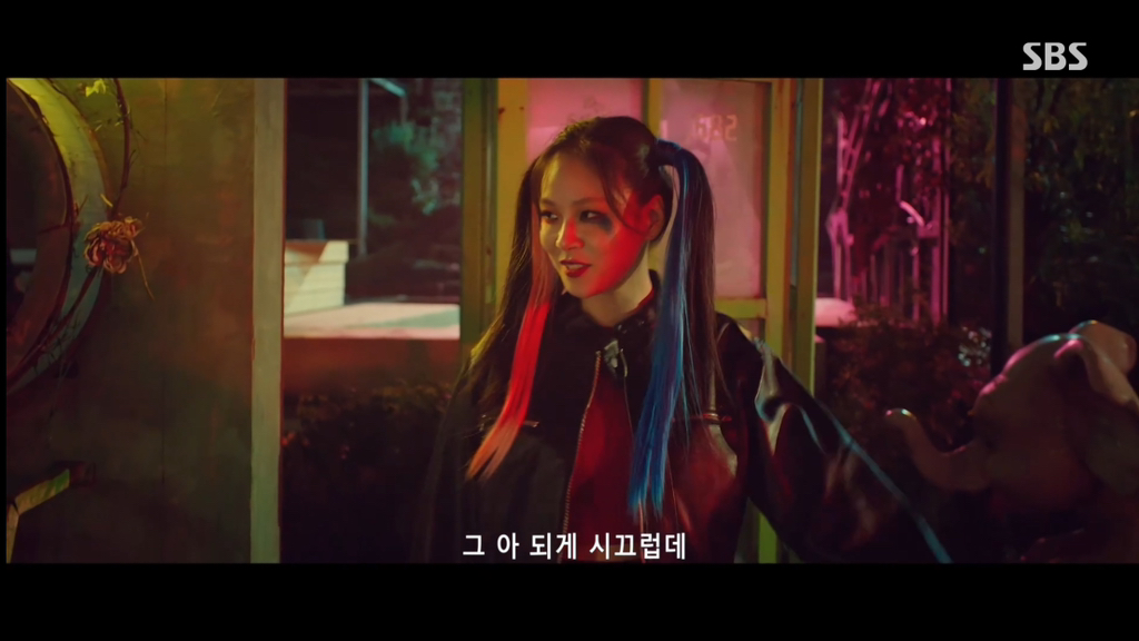 위 장면은 범죄자들 잡으러 가는데 쌩뚱맞게 할리퀸, 조커등의 코스프레를 하고 잡으러 감