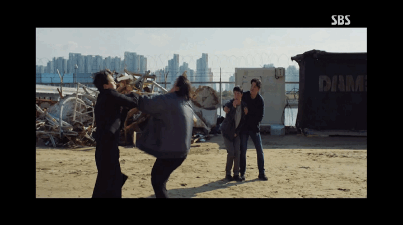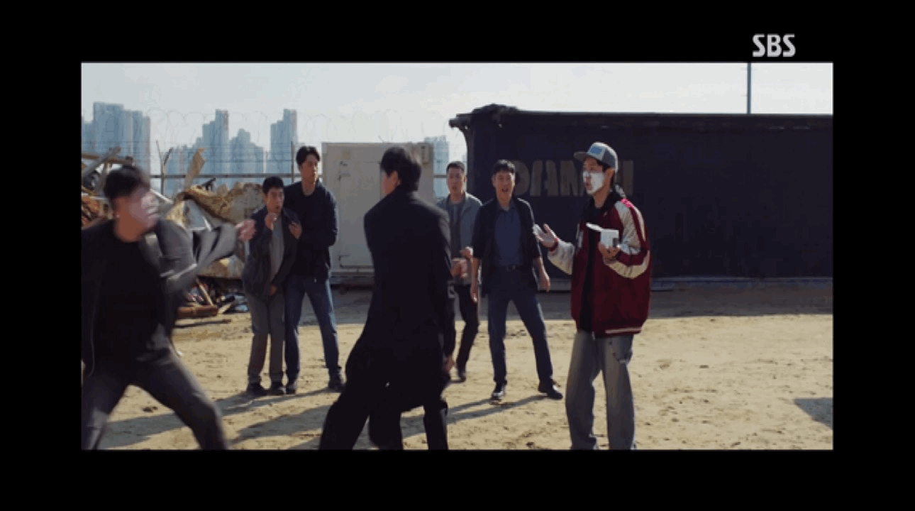 주인공 김해일이 혈도를 짚어서 빌런들을 제압하는 장면
