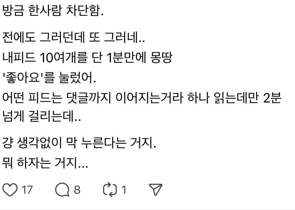 작성자달콤소금 작성시간 24.12.01 하트 눌러주면 고마운거아냐? ㅋㅋㅋㅋㅋ