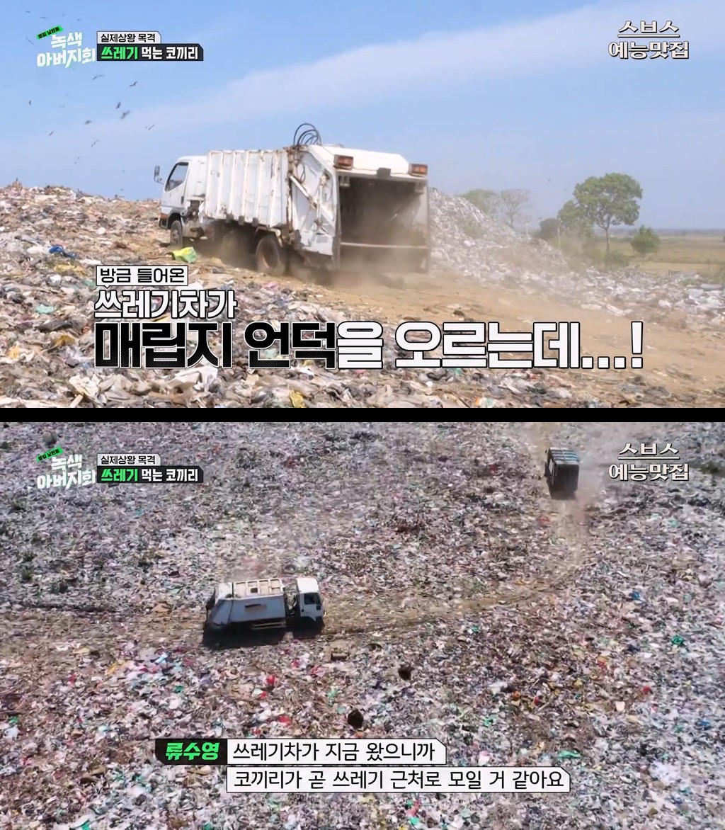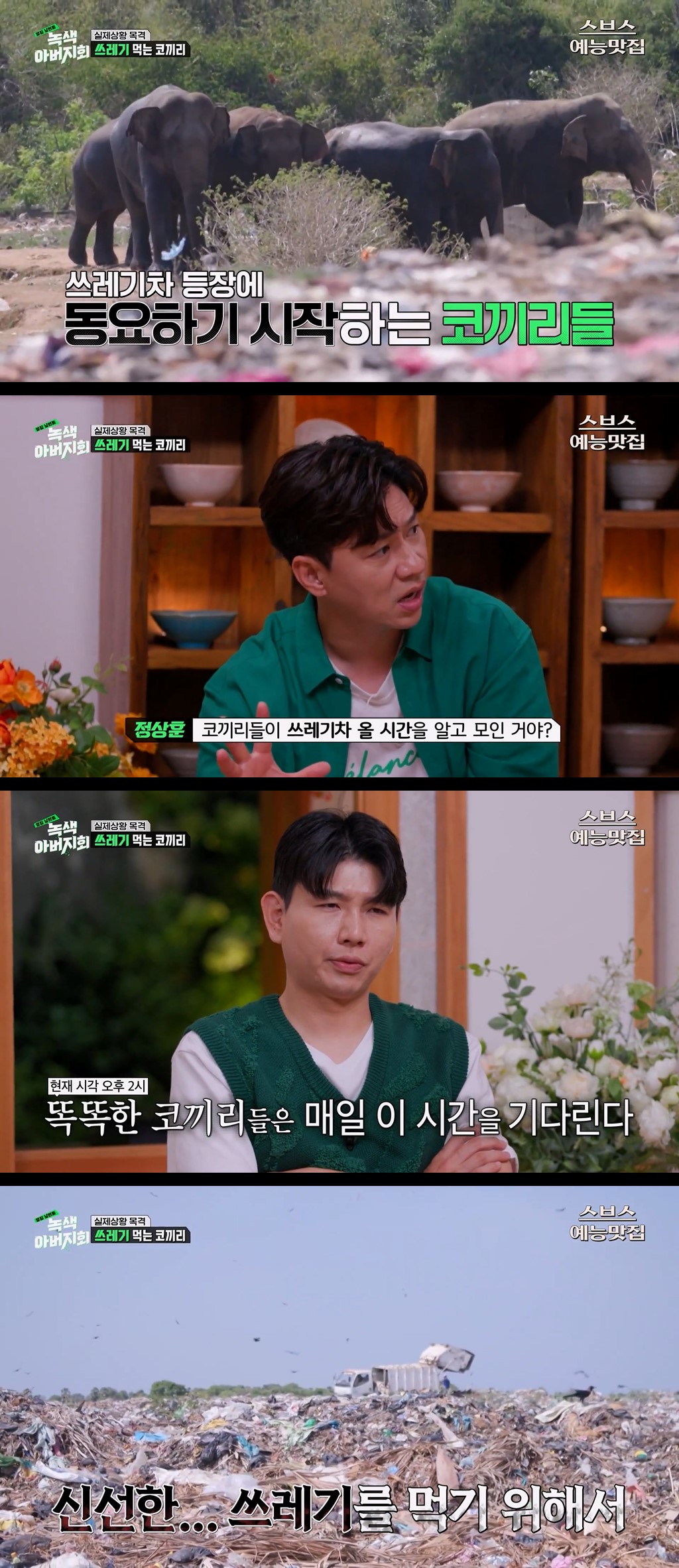 코끼리들은 똑똑해서 이 쓰레기가 오는 시간이 되면 몰려듬