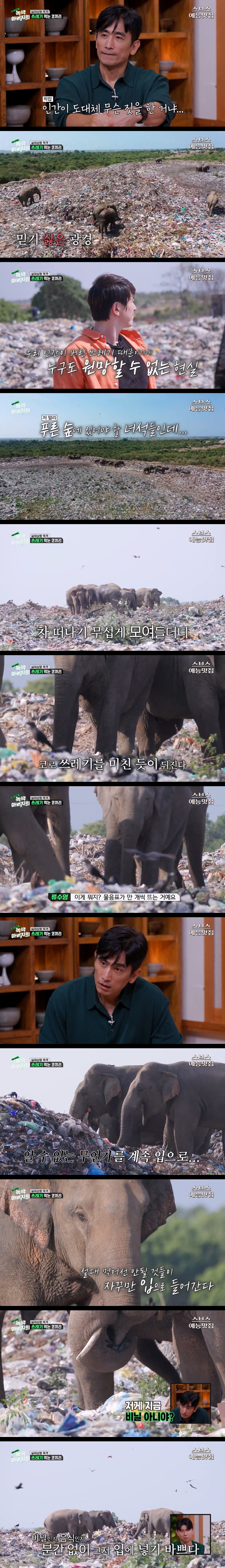 스리랑카에는 코끼리가 지나가는 길에 쓰레기 매립지가 있음