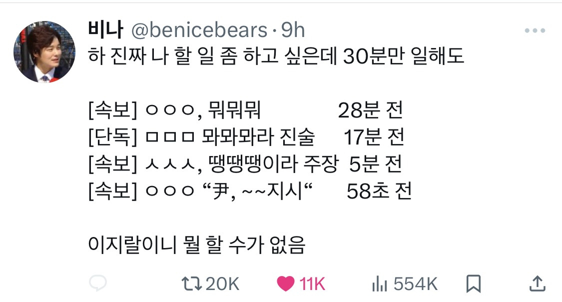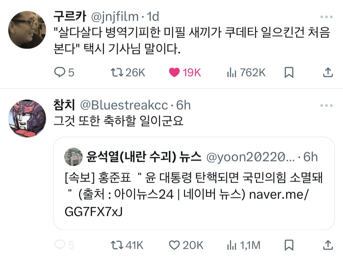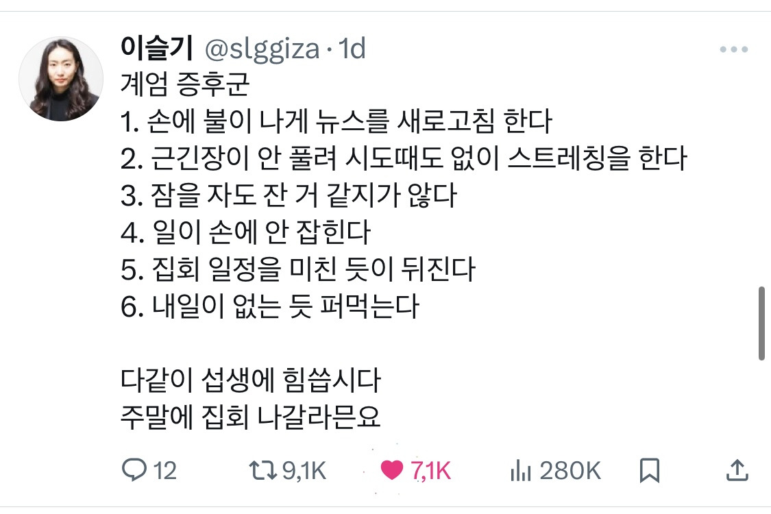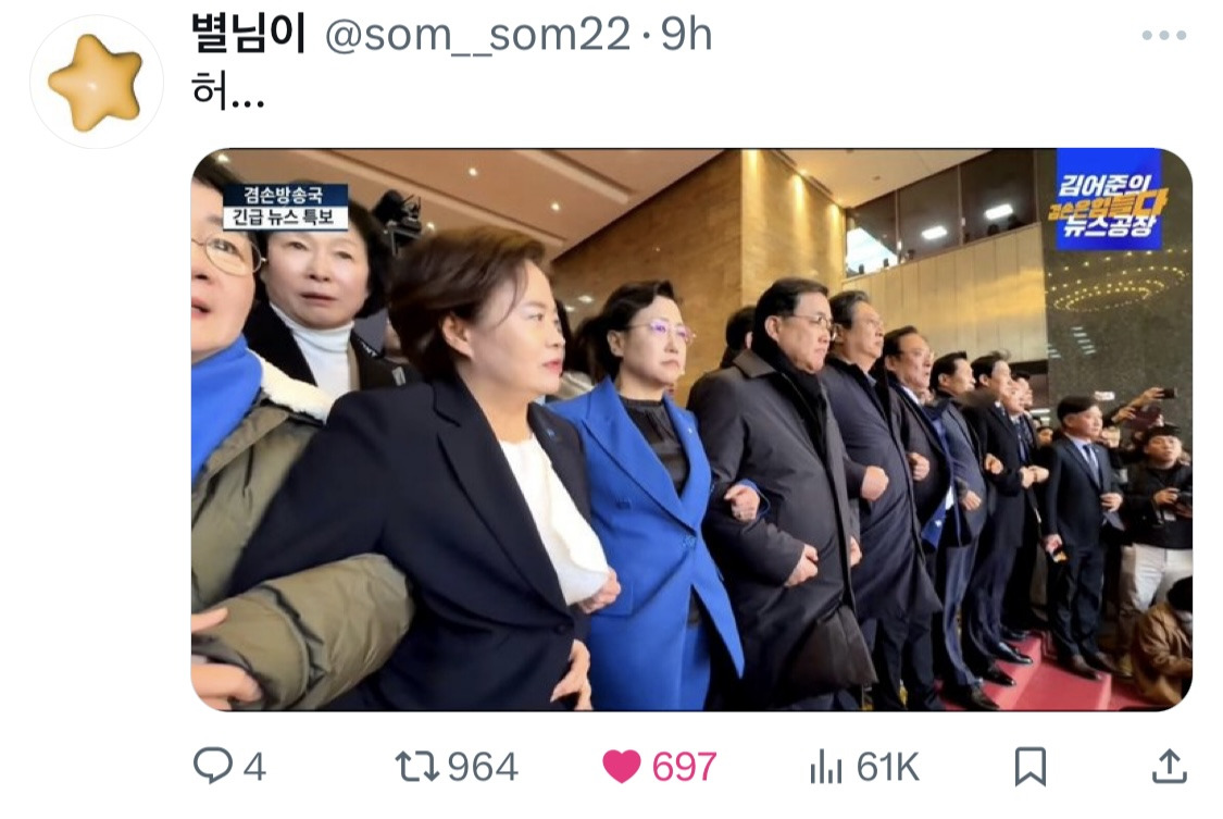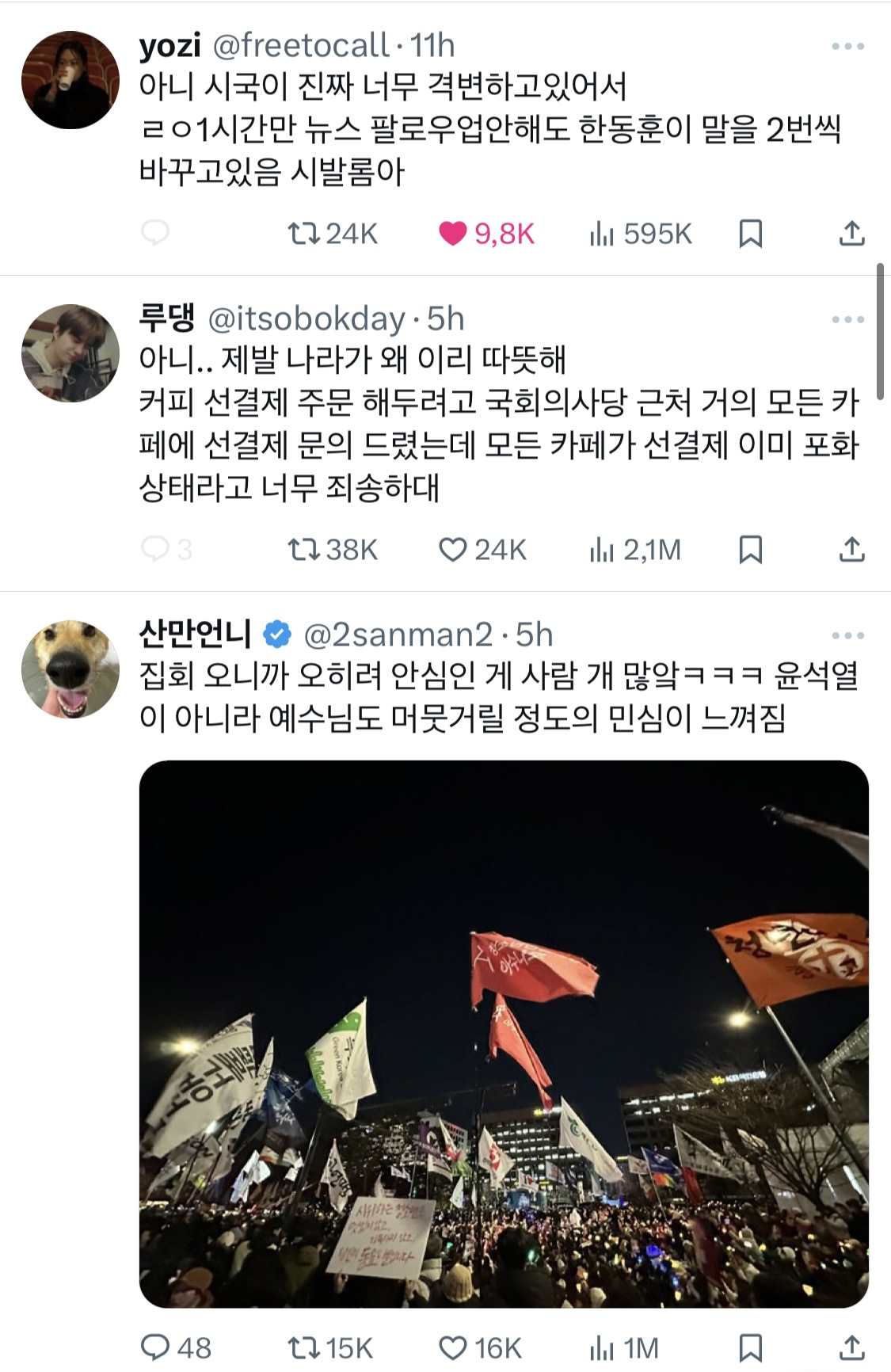 [흥미돋]전국민사흘연속불침번 사태 트위터모음 작성자민뜌|작성시간24.12.07|조회수17,812 목록 댓글 27 글자크기 작게가 글자크기 크게가 출처: 여성시대 민뜌🍀🍀🍀🍀🍀🍀🍀🍀🍀🍀🍀🍀 다음검색 현재 게시글 추가 기능 열기 북마크 공유하기 신고 센터로 신고 댓글 댓글 27 댓글쓰기 답글쓰기 댓글 리스트 작성자2차는 안된다 | 작성시간 24.12.07 ㅅㅂ 진짜 일어나서 뉴스랑쩌리유튜브브터 보는거 이거맞냐 작성자비혼이다비혼 | 작성시간 24.12.07 진짜 일상이 하루종일 뉴스만 봄 작성자역사저널 그날 | 작성시간 24.12.07 여대 너무 멋짐 작성자짱밍이 | 작성시간 24.12.07 전국민 수면부족상태ㅡㅡ 탄핵되고 내란으로 사형되어라 작성자The Band CAMINO | 작성시간 24.12.07 고마워잘봤어 댓글 전체보기
