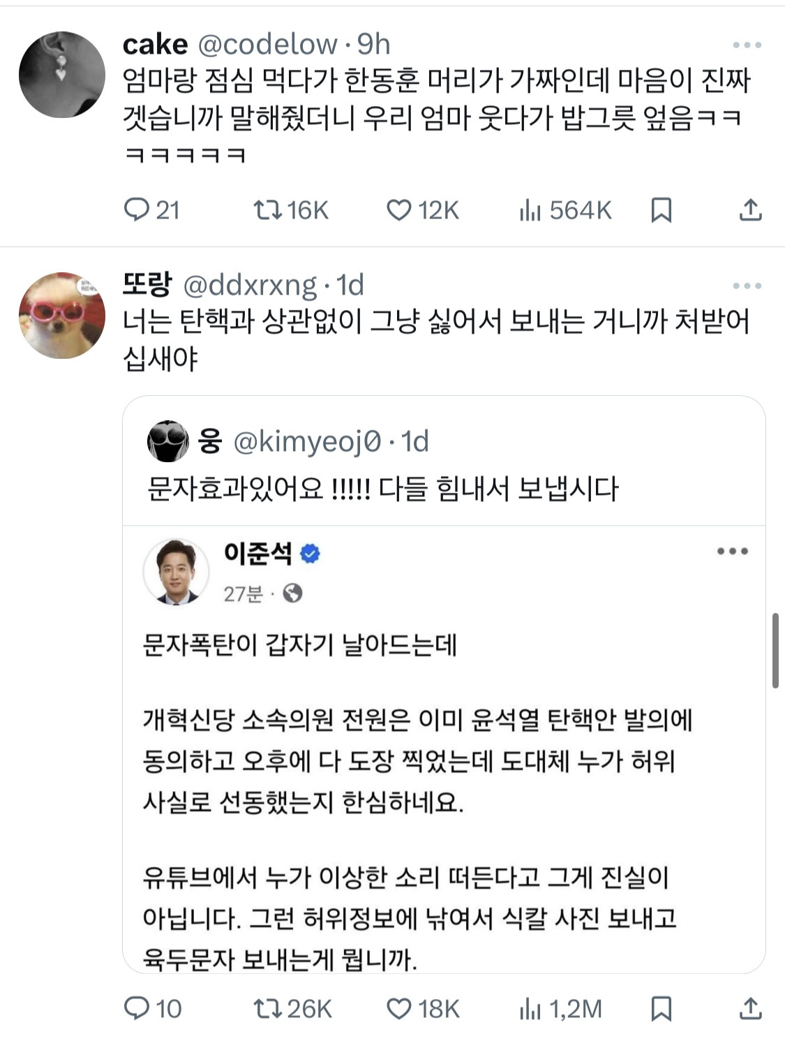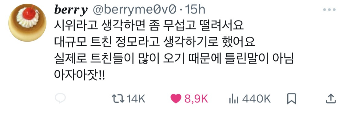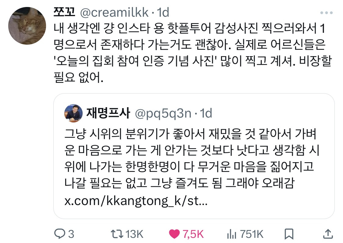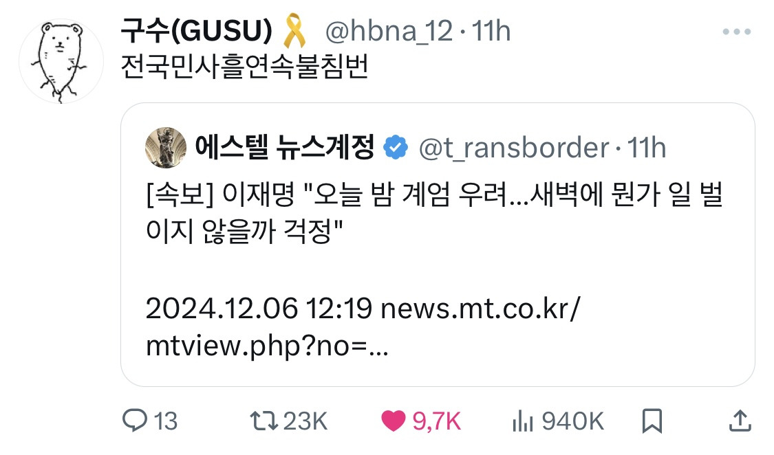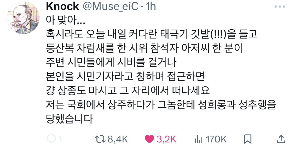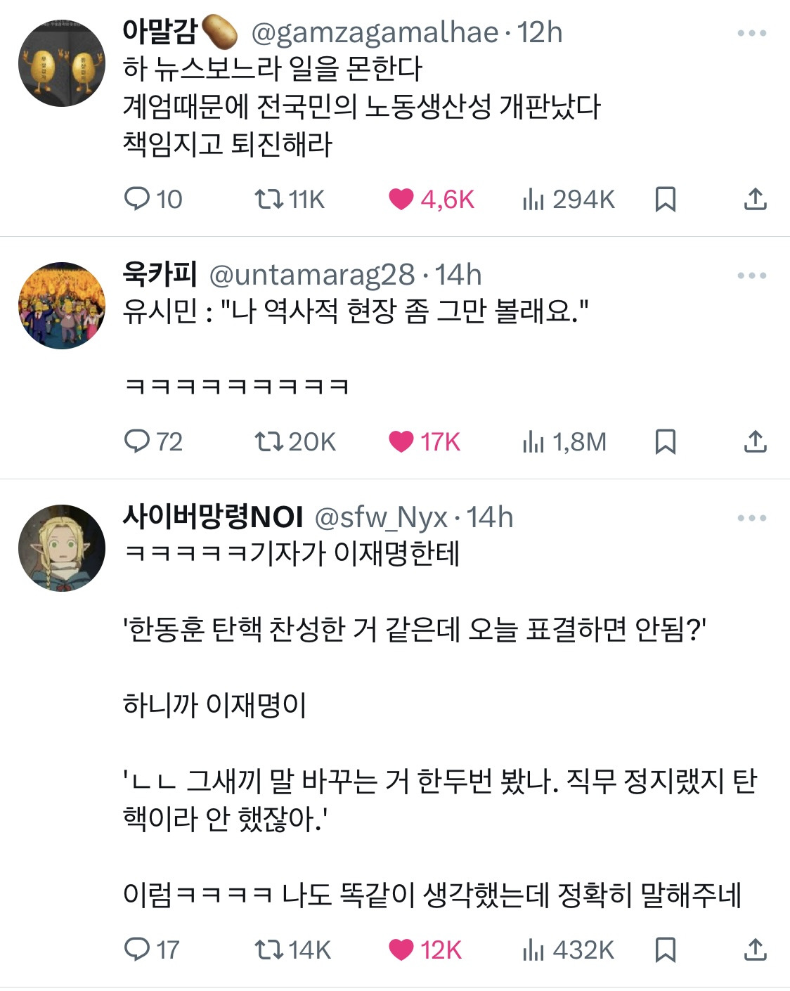 [흥미돋]전국민사흘연속불침번 사태 트위터모음 작성자민뜌|작성시간24.12.07|조회수17,812 목록 댓글 27 글자크기 작게가 글자크기 크게가 출처: 여성시대 민뜌🍀🍀🍀🍀🍀🍀🍀🍀🍀🍀🍀🍀 다음검색 현재 게시글 추가 기능 열기 북마크 공유하기 신고 센터로 신고 댓글 댓글 27 댓글쓰기 답글쓰기 댓글 리스트 작성자2차는 안된다 | 작성시간 24.12.07 ㅅㅂ 진짜 일어나서 뉴스랑쩌리유튜브브터 보는거 이거맞냐 작성자비혼이다비혼 | 작성시간 24.12.07 진짜 일상이 하루종일 뉴스만 봄 작성자역사저널 그날 | 작성시간 24.12.07 여대 너무 멋짐 작성자짱밍이 | 작성시간 24.12.07 전국민 수면부족상태ㅡㅡ 탄핵되고 내란으로 사형되어라 작성자The Band CAMINO | 작성시간 24.12.07 고마워잘봤어 댓글 전체보기