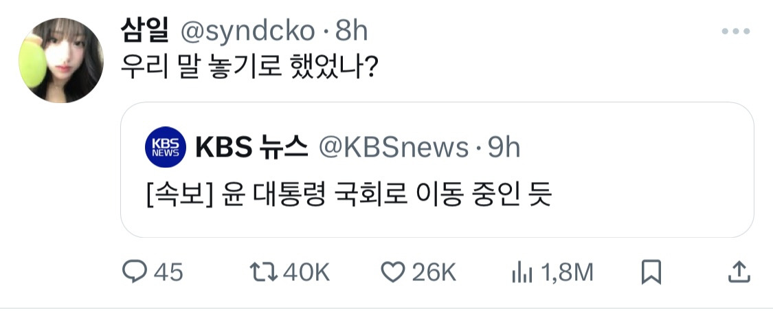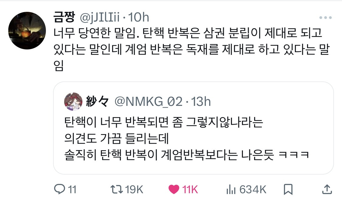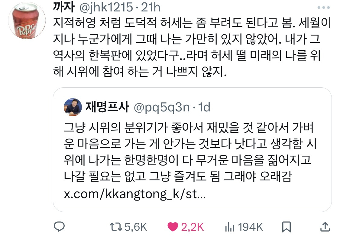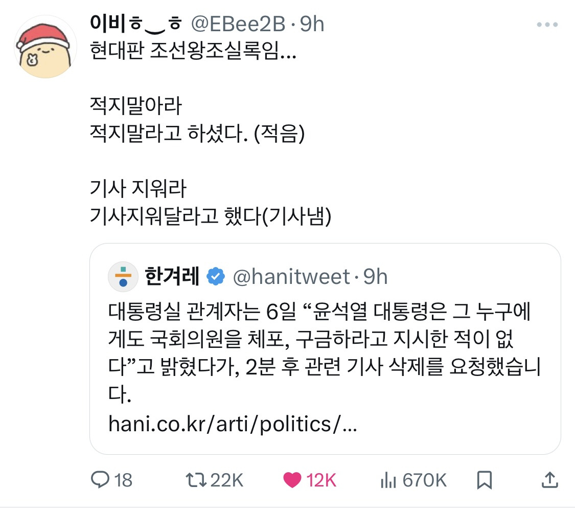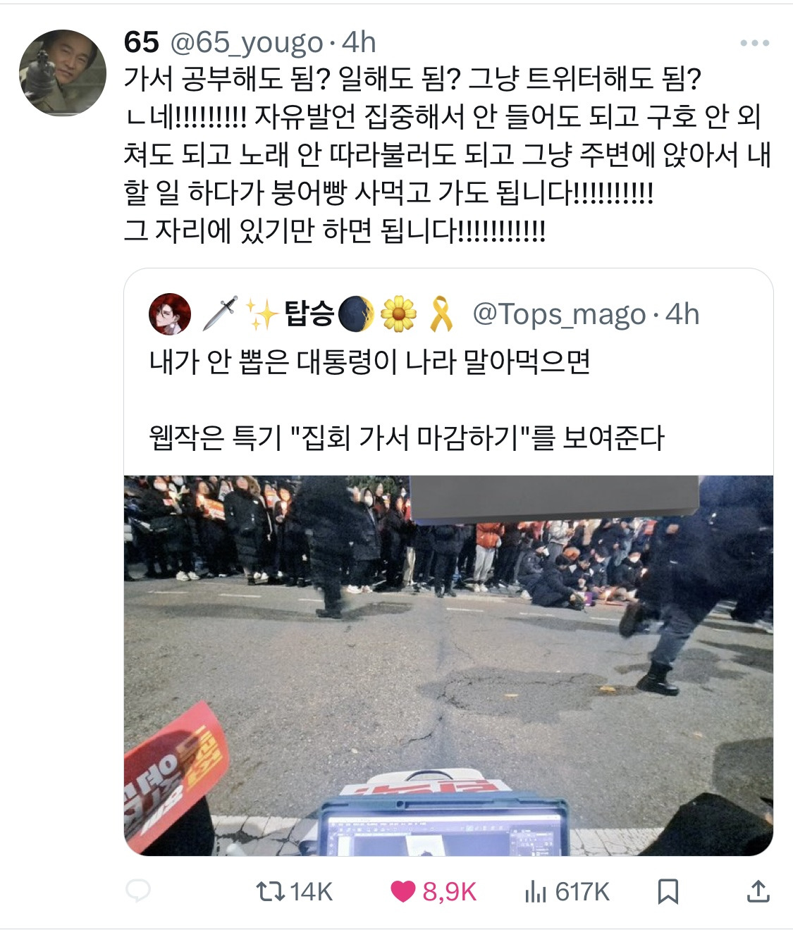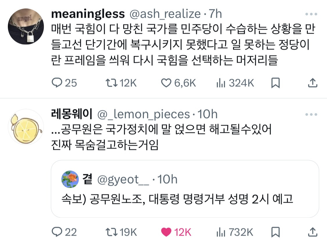 [흥미돋]전국민사흘연속불침번 사태 트위터모음 작성자민뜌|작성시간24.12.07|조회수17,812 목록 댓글 27 글자크기 작게가 글자크기 크게가 출처: 여성시대 민뜌🍀🍀🍀🍀🍀🍀🍀🍀🍀🍀🍀🍀 다음검색 현재 게시글 추가 기능 열기 북마크 공유하기 신고 센터로 신고 댓글 댓글 27 댓글쓰기 답글쓰기 댓글 리스트 작성자2차는 안된다 | 작성시간 24.12.07 ㅅㅂ 진짜 일어나서 뉴스랑쩌리유튜브브터 보는거 이거맞냐 작성자비혼이다비혼 | 작성시간 24.12.07 진짜 일상이 하루종일 뉴스만 봄 작성자역사저널 그날 | 작성시간 24.12.07 여대 너무 멋짐 작성자짱밍이 | 작성시간 24.12.07 전국민 수면부족상태ㅡㅡ 탄핵되고 내란으로 사형되어라 작성자The Band CAMINO | 작성시간 24.12.07 고마워잘봤어 댓글 전체보기