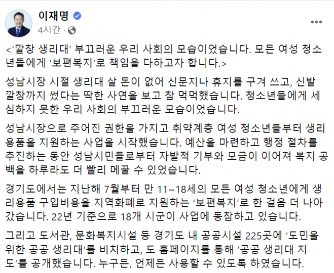 미성년자 무상생리대 정책