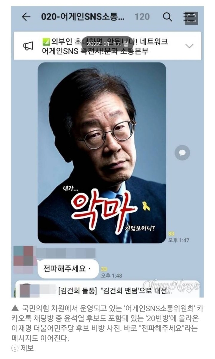 이재명 악마만들기 "특전사"단톡방