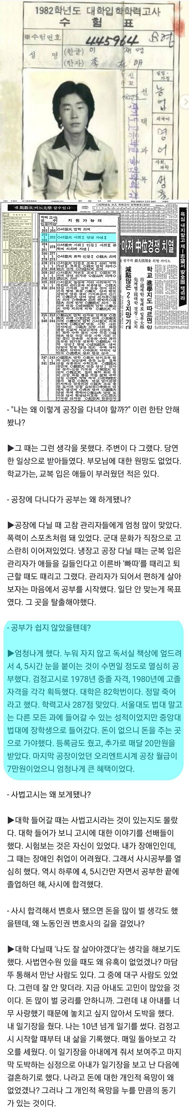 1980년 5월 3일 이재명이 17살 때 쓴 일기