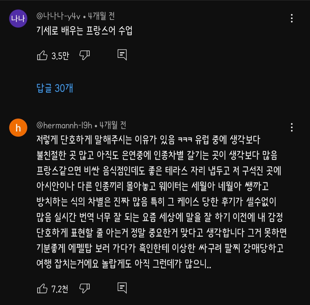 작성자바람 끝에 하늘 작성시간 24.12.08 EBS 프랑스어 정일영 선생님 강의로 공부했는데 요새 이런 쇼츠로 다시보여서 진짜 개웃김ㅋㅋㅋㅋㅋㅋㅋ