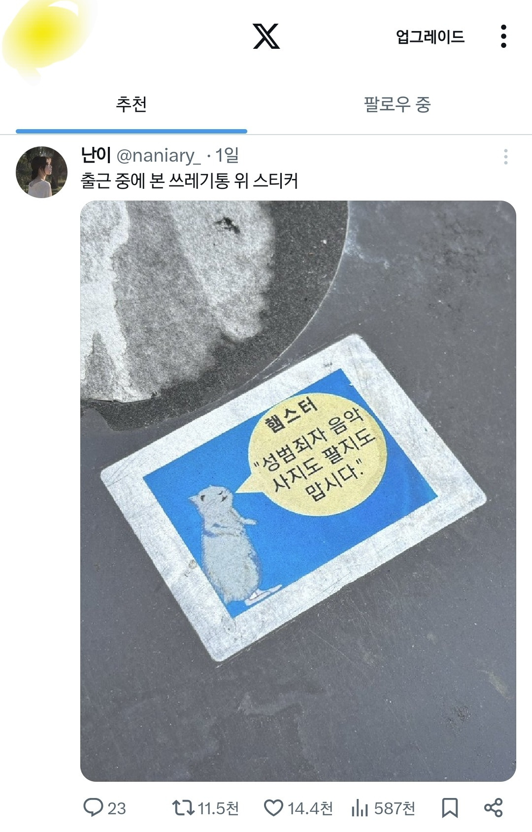 알고리즘 더 타서 추천탭에 여시 취향 트윗들로만 쭉쭉 들어올 거임
