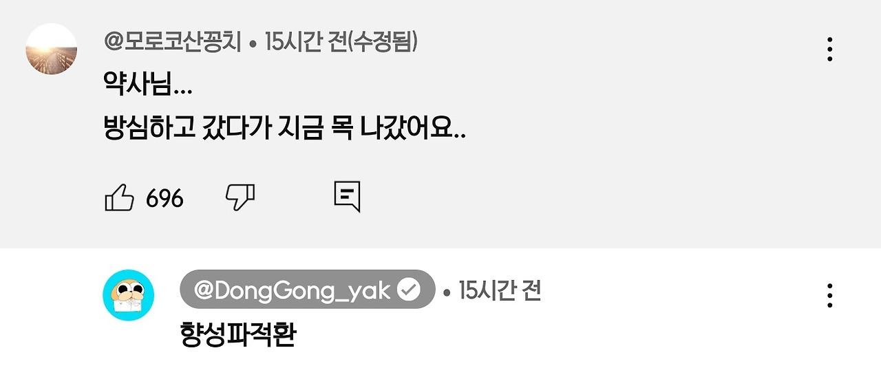 [흥미돋]유튜버 동공이약사 커뮤니티글.jpg 작성자나프탈렌향|작성시간24.12.09|조회수17,860 목록 댓글 67 글자크기 작게가 글자크기 크게가 출처: https://www.dmitory.com/issue/344742743 Instagram에서 이 게시물 보기 동공이 약사(@donggong_yak)님의 공유 게시물 토요일에 올라온거라고 함 이게 향성파적환 다음검색 현재 게시글 추가 기능 열기 북마크 공유하기 신고 센터로 신고 댓글 댓글 67 댓글쓰기 답글쓰기 댓글 리스트 작성자천재개 | 작성시간 24.12.09 판만대장경…? 작성자호이호호이 | 작성시간 24.12.09 글루따띠온~! 작성자새로운세상으로 | 작성시간 24.12.09 글루타치온 좋다는 줄 알고 시위 가방에 글루타치온 때려넣었다.시위 때 아주 글루타치온으로 혼쭐내줄거야 작성자백일몽주식회사대리 | 작성시간 24.12.09 글루따띠온 ㅜ 작성자무도전한 | 작성시간 24.12.09 최고네 댓글 전체보기