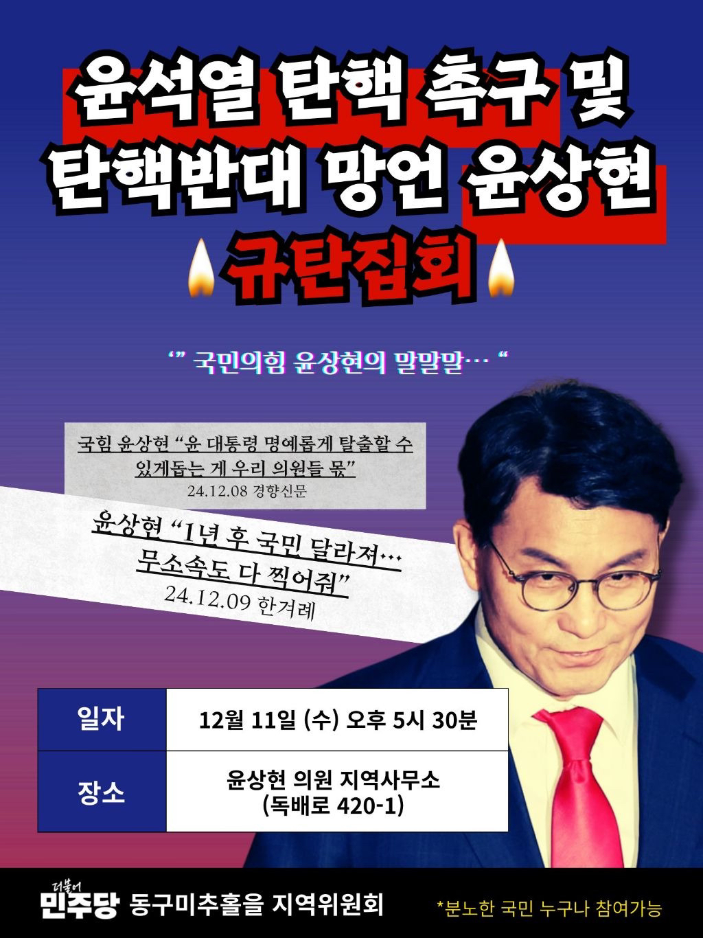 [흥미돋]12/11 오늘 인천에서 국짐 윤상현의원 규탄시위 예정 작성자윤석열을탄핵해|작성시간24.12.11|조회수3,847 목록 댓글 33 글자크기 작게가 글자크기 크게가 출처: 여성시대 윤석열을탄핵해12/11 수요일 바로 오늘‼️‼️‼️오후 5시 30분윤상현의원 지역사무소 앞(인천 미추홀구 독배로 420-1)에서 윤석열 탄핵 촉구 및 윤상현 규탄집회가 열려!!!🔥🔥분노한 국민 누구나 참여가능해🔥🔥참여 가능한 여시들 있다면 함께 힘 모으자 ‼️‼️문제시 수정할게 다음검색 현재 게시글 추가 기능 열기 북마크 공유하기 신고 센터로 신고 댓글 댓글 33 댓글쓰기 답글쓰기 댓글 리스트 작성자액상과당끊어야산다 | 작성시간 24.12.11 아 가야되는데 오늘 야근인데 아 ㅠ 가야되는데!!!!!!!!! 작성자반일을 외치며 이득을 취하는 여시 | 작성시간 24.12.11 부검하자 ㅡㅡ 작성자장마철첨벙첨벙 | 작성시간 24.12.11 악 일하고있어ㅠㅠ 작성자동눅업 | 작성시간 24.12.11 간다 씨뱅아 작성자1664blanc | 작성시간 24.12.11 뭐??????이제봤어 잘하고왔나 ㅜㅠㅠ 댓글 전체보기