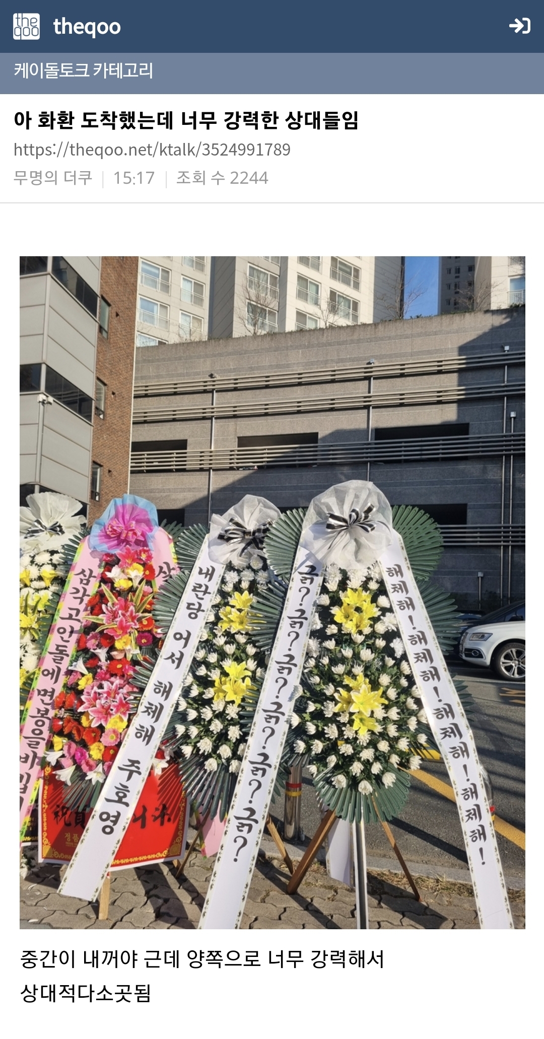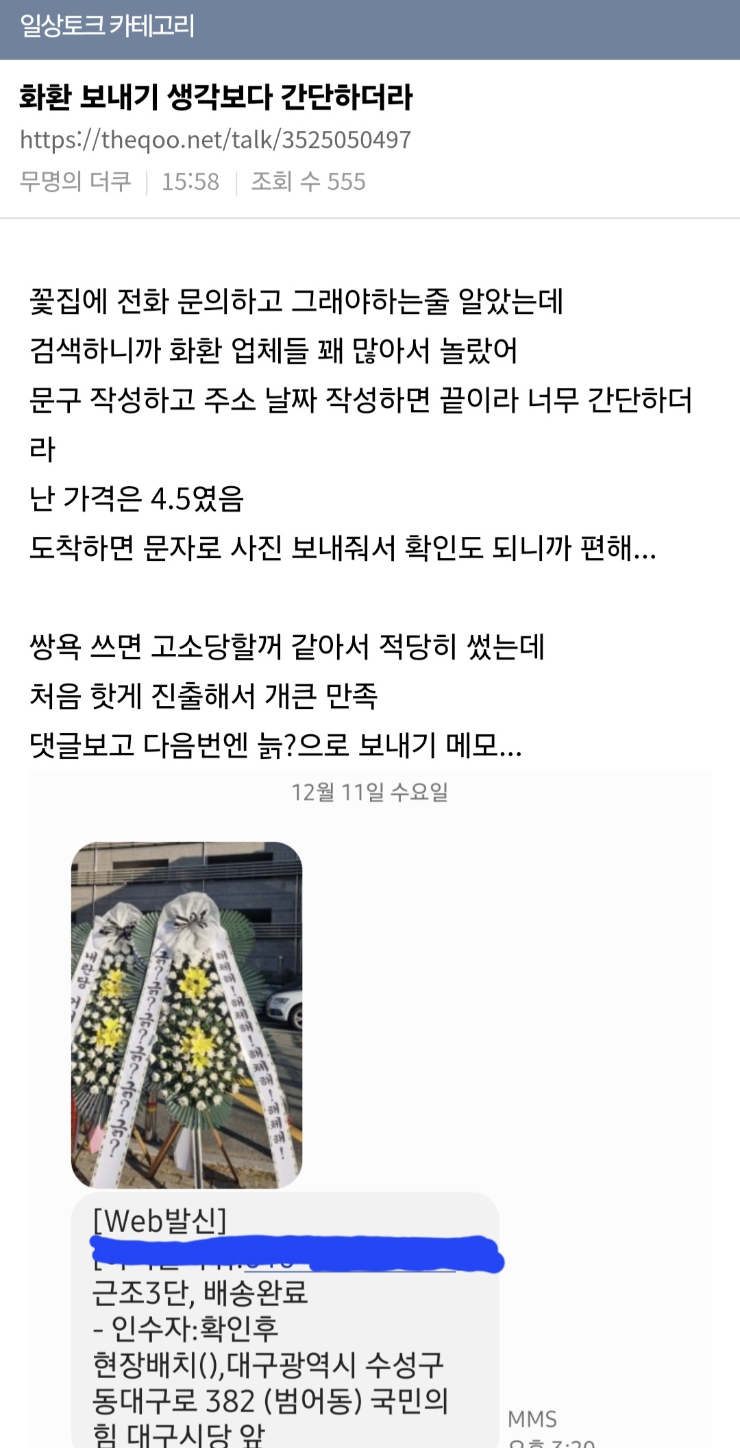 (+) 옆에 긁? 화환도 다른 더쿠가 보낸 거래