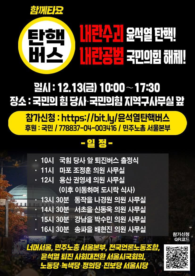 금요일에 국민의힘 서울 지역 의원 사무실 투어 탄핵버스가 있다고. pic.twitter.com/KYJlBkaJEQ