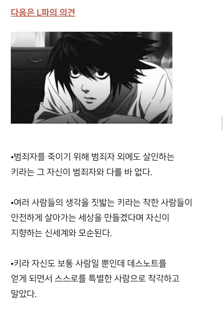 엘은 정의를 지킨다기보다 그냥 사회가 만든 법을 지켰을뿐