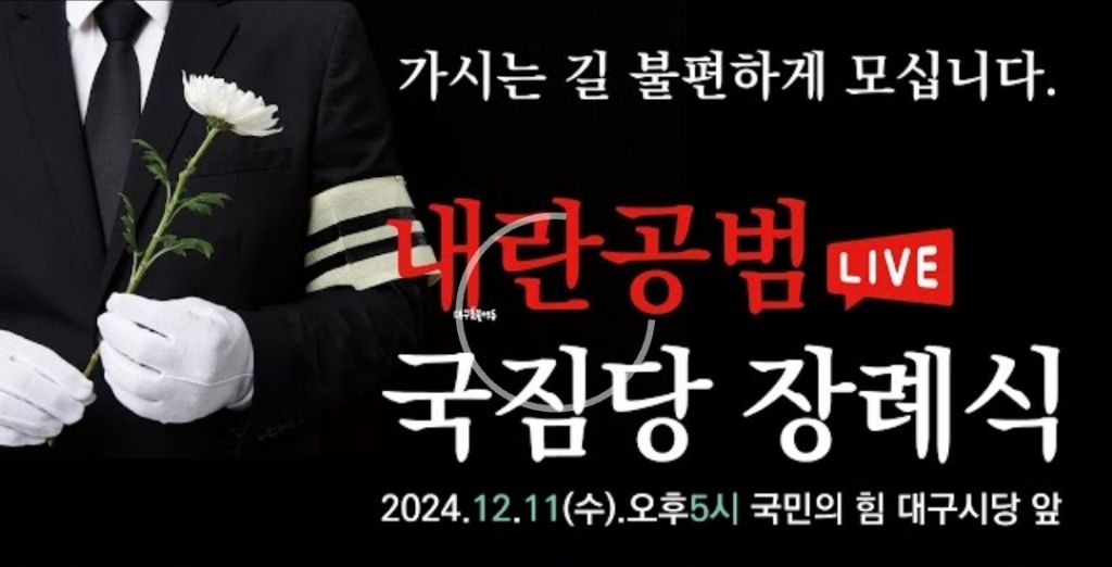 [흥미돋]대구 장례식(국짐) 실시간 라이브.youtube 작성자죠원봉|작성시간24.12.11|조회수8,924 목록 댓글 48 글자크기 작게가 글자크기 크게가 출처: https://www.youtube.com/live/eagNgNmhIwg?si=FK1t-8xZ46LI5GoI내란공범 국짐당 장례식 현장생중계 윤석열탄핵, 체포 / 12월 11일 오후5시. 국힘당 대구시당 앞#윤석열탄핵 #윤석열체포 #국힘당해체 🔥대구촛불행동 네이버카페 : https://buly.kr/9t9lPFW-------------------------------------대구가 바뀌면, 세상이 바뀐다. 대구 밭갈이 전문채널! 대구의소리🤳구독 / 좋www.youtube.com온라인 육계장 먹으러 온나× 해당 시위는 '촛불행동'' 주최입니다 참조하세요!!! 다음검색 현재 게시글 추가 기능 열기 북마크 공유하기 신고 센터로 신고 댓글 댓글 48 댓글쓰기 답글쓰기 댓글 리스트 작성자你爸也是韩男 | 작성시간 24.12.11 육개장이 맛있어요 조문객 많아서 즐거웠어요 답댓글 작성자你爸也是韩男 | 작성시간 24.12.11 발인 언제인가요??? 작성자메롱씨티 장갑축제 | 작성시간 24.12.11 1부 마무리 돼서 다시 여시 왓어 존내 재밋다 ㅋㅋㅋㅋㅋㅋㅋㅋㅋㅋㅋ 작성자굳이요제가요왜요 | 작성시간 24.12.11 ㅋㅋㅋㅋㅋㅋㅋㅋㅋ참지않넼ㅋㅋㅋㅋㅋㅋ 작성자금속노조는 선봉에 선다 | 작성시간 24.12.11 ㅋㅋㅋㅋㅋ 클락션으로 지지해주네 댓글 전체보기