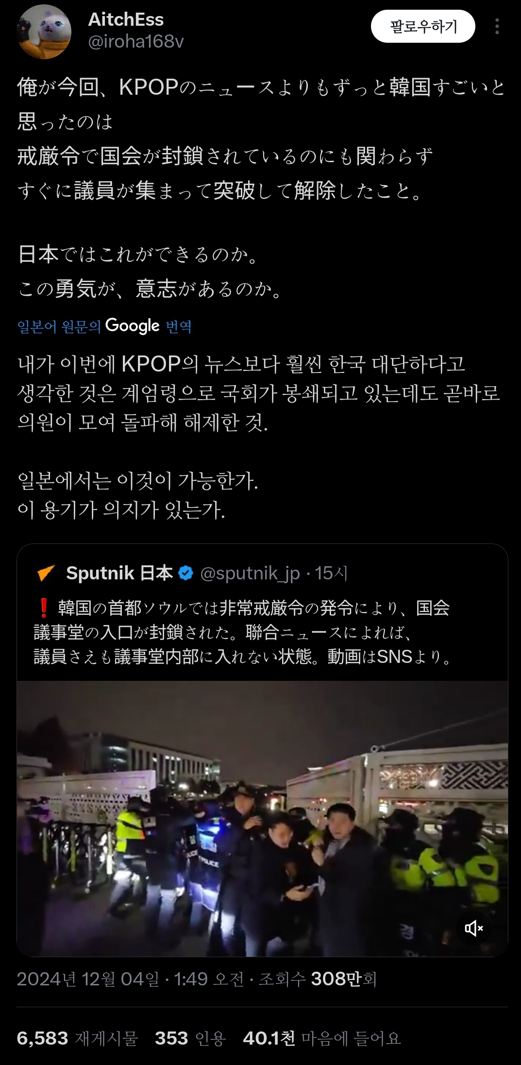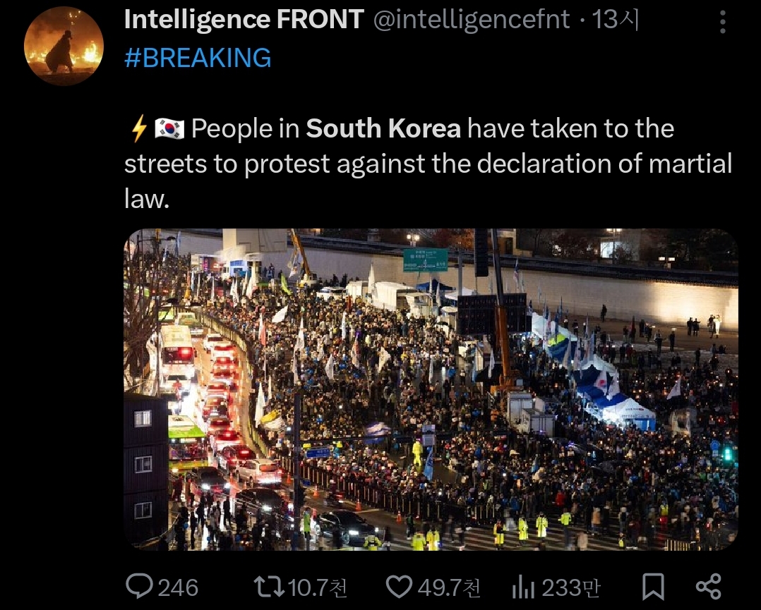 작성자러닝을하자 작성시간 24.12.12 한국 국민들 개쎄~