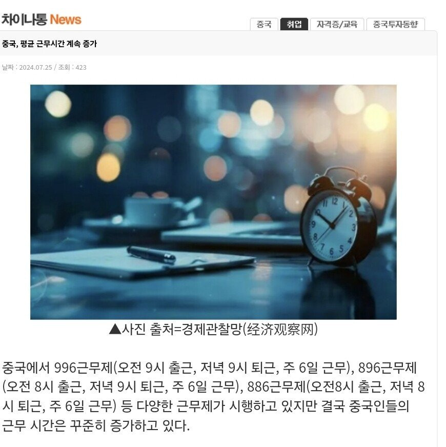 더해 중국의 하루 13-14시간 주 6일 근무,