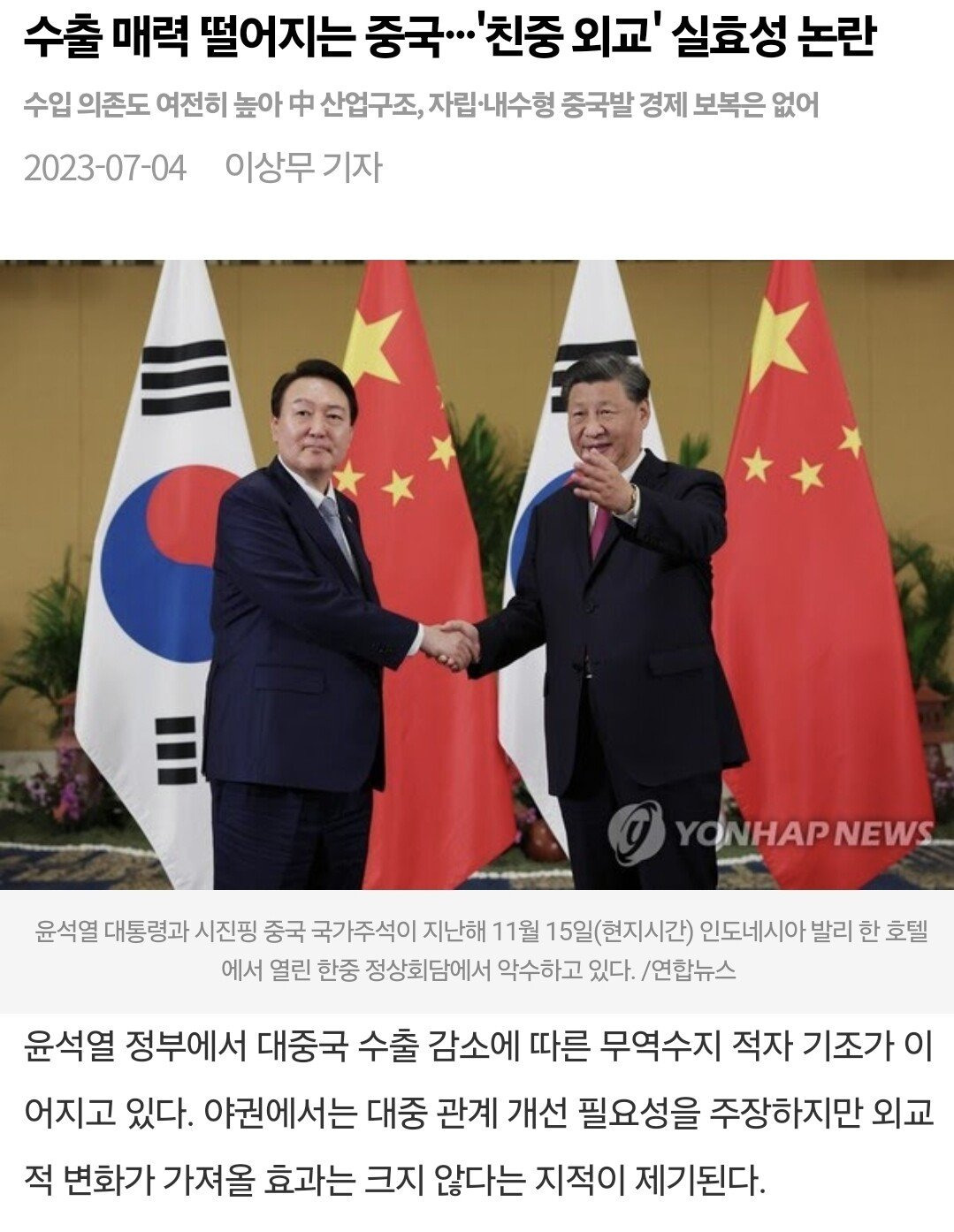 마냥 중국을 제낄수도 없고 오히려 중국이 국산화 하며 독일 자동차와 마찬가지로 반도체에서도 쫒겨나는 형국.