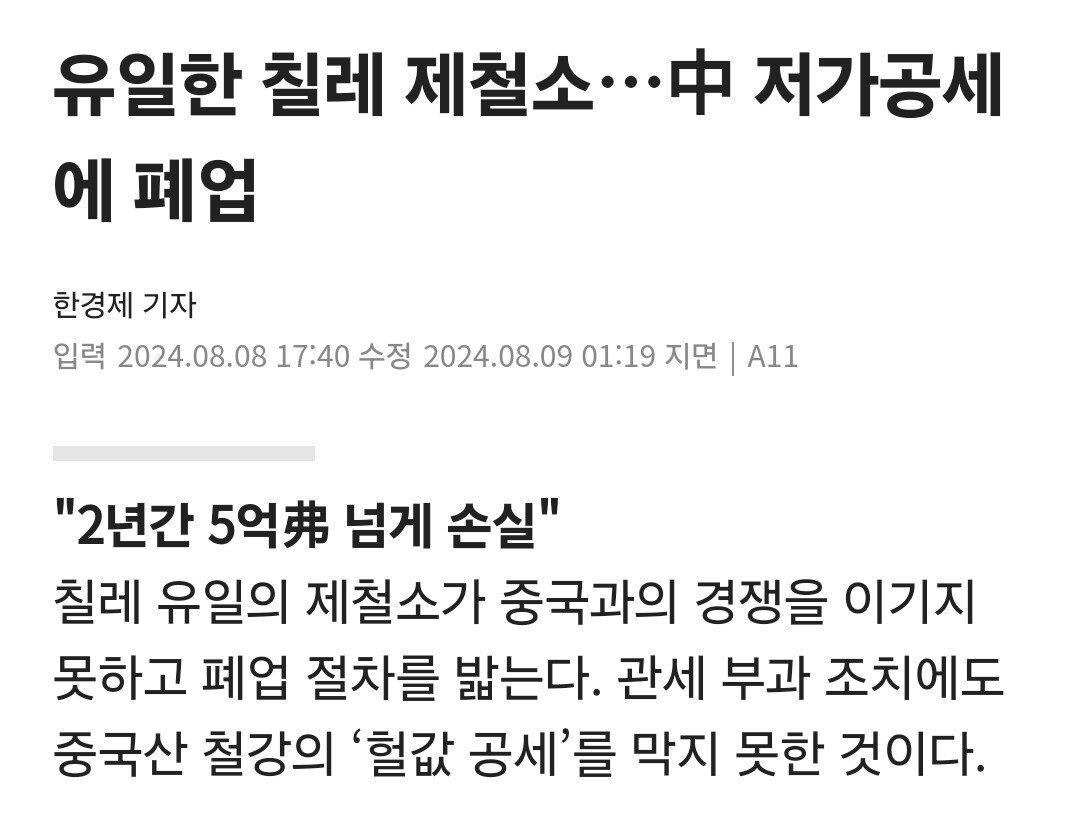 철강, 기계 등은 중국의 저가 공세에 공장들 줄줄이 폐쇄중이고,