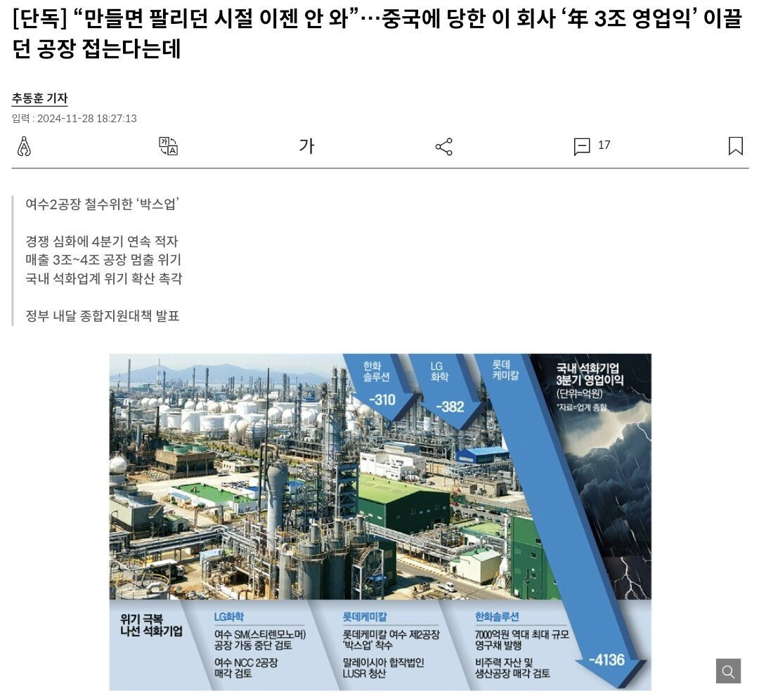 돈을 만들어내는 생산성의 원천이자 밥그릇 그 자체인 산업들이 속절없이 털리는중.