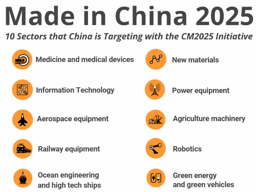 중국 제조 2025는 곧 오는 내년인 2025년에 중국이 지정한 10대 전략산 무제한적 정부 자금 + 인력지원으로 세계 최고로 올라선다는 국가 정책.