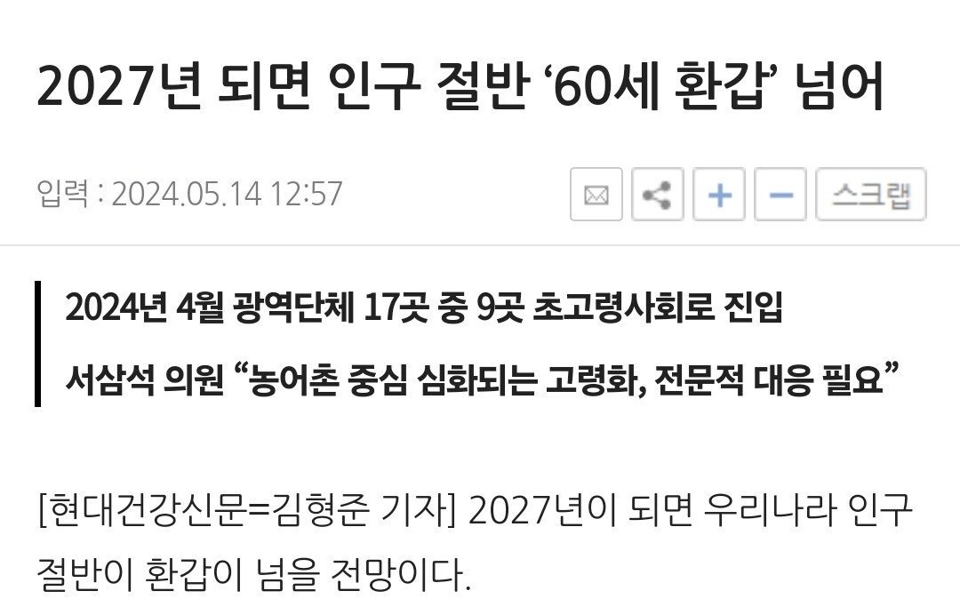 [ 2027년 한국 인구 절반 60세 이상 시대 ]
