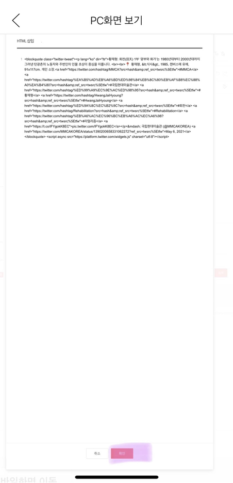 4. 다음카페 열고 pc버전으로 글 쓰면 됨 HTML에 카피 코드 복사해온 거 넣으면 되는데 복붙이 안 된다면