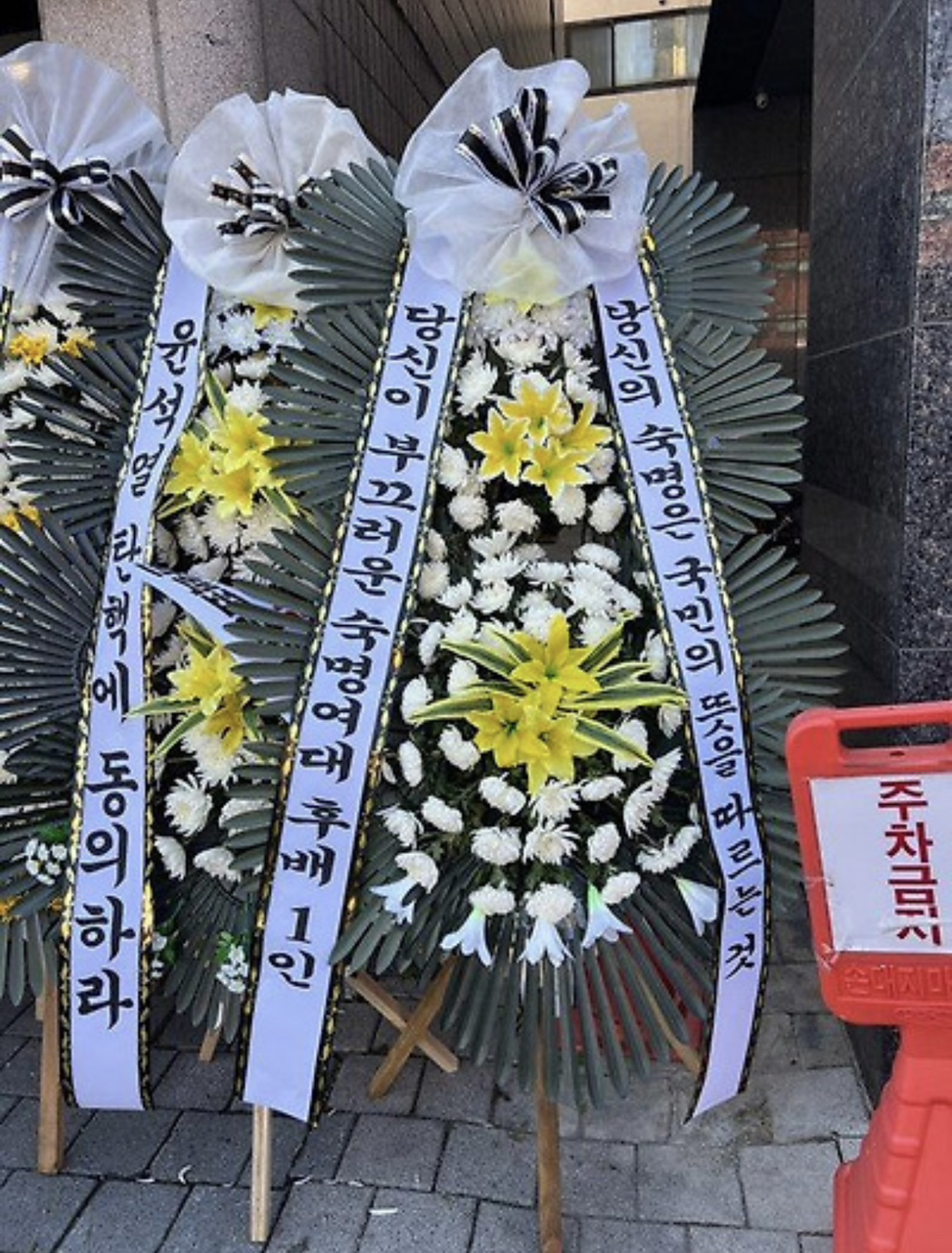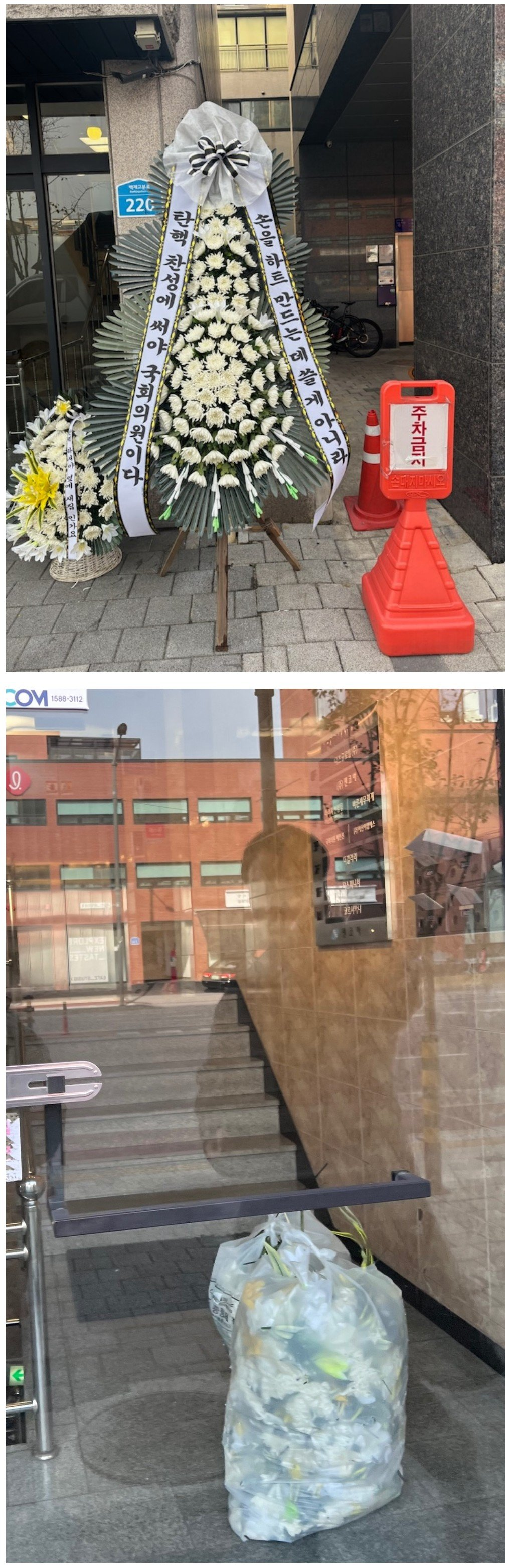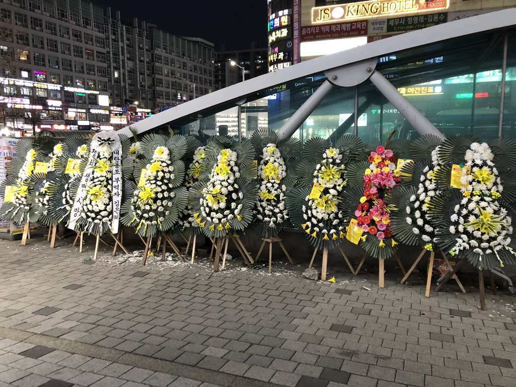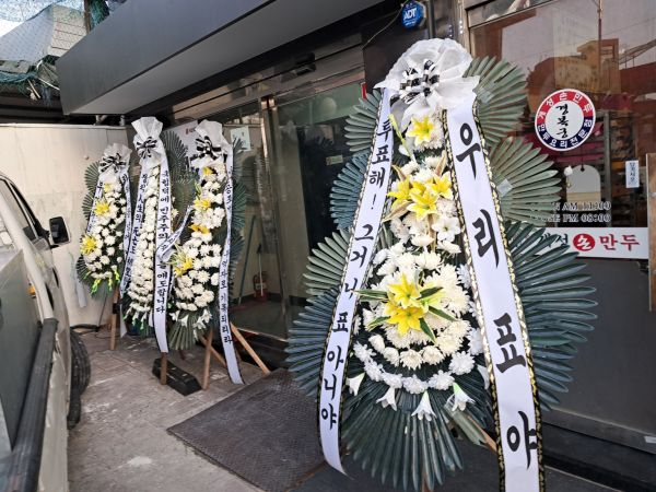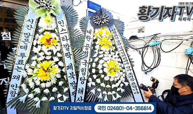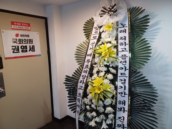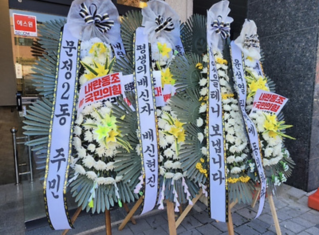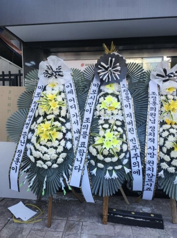 (배현진 인기 많네요 바로바로 치워서 그런지 새로운 화환들이 많습니다.)