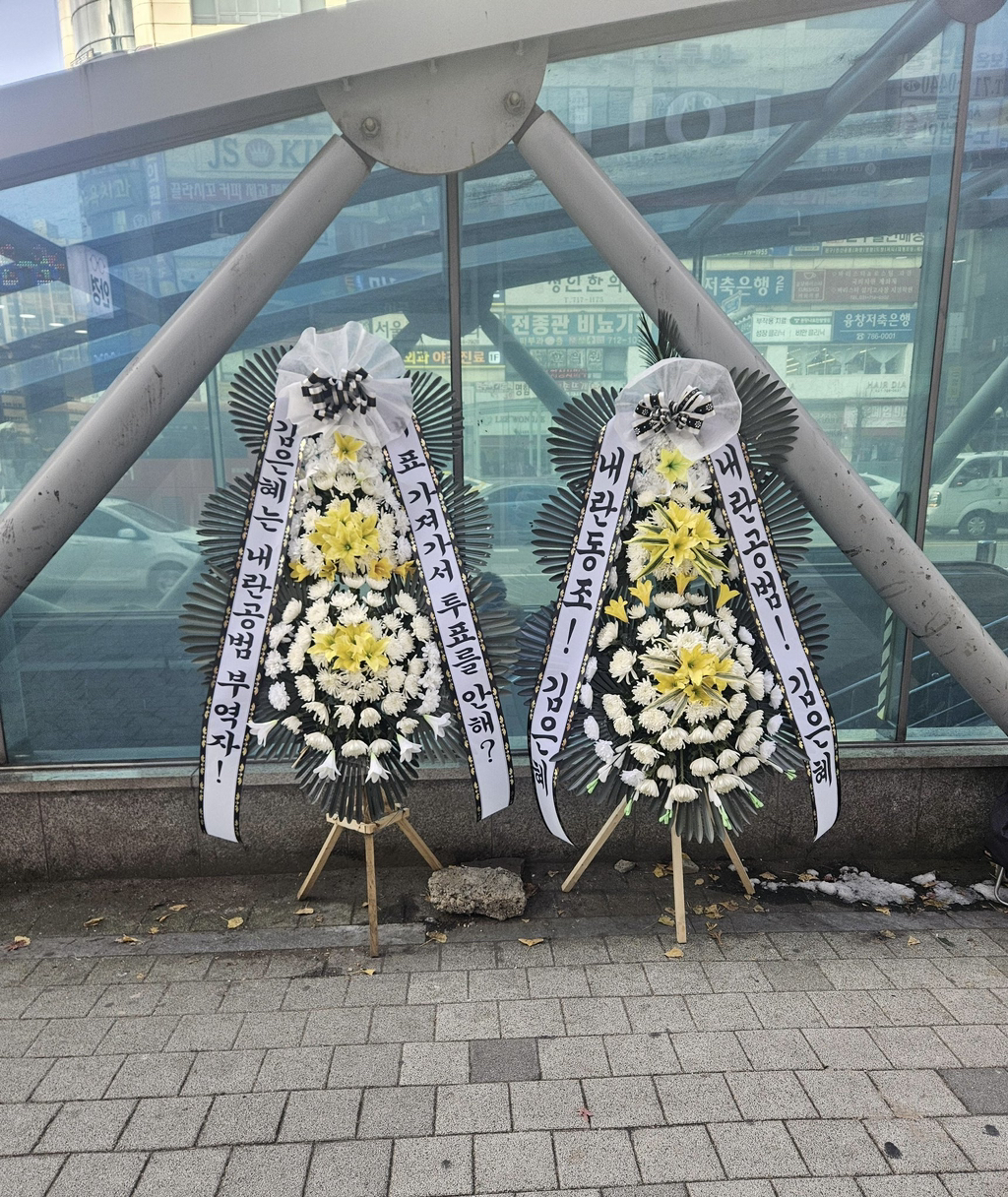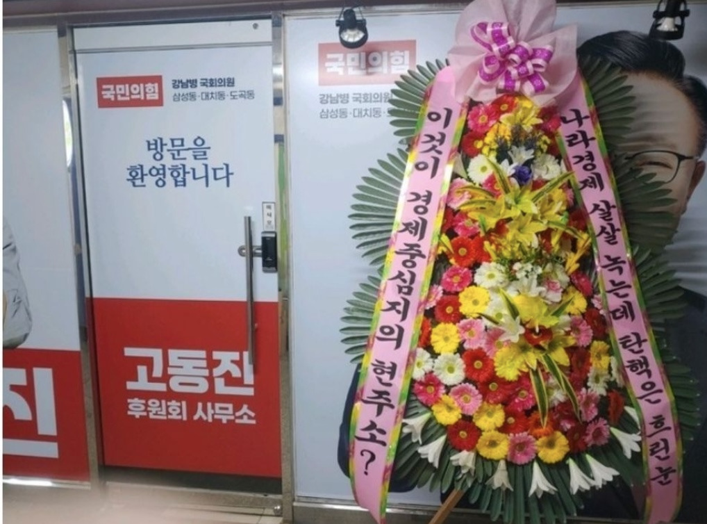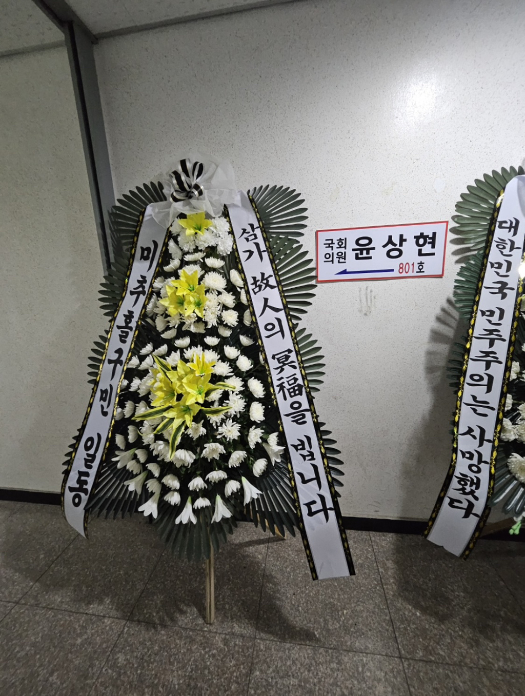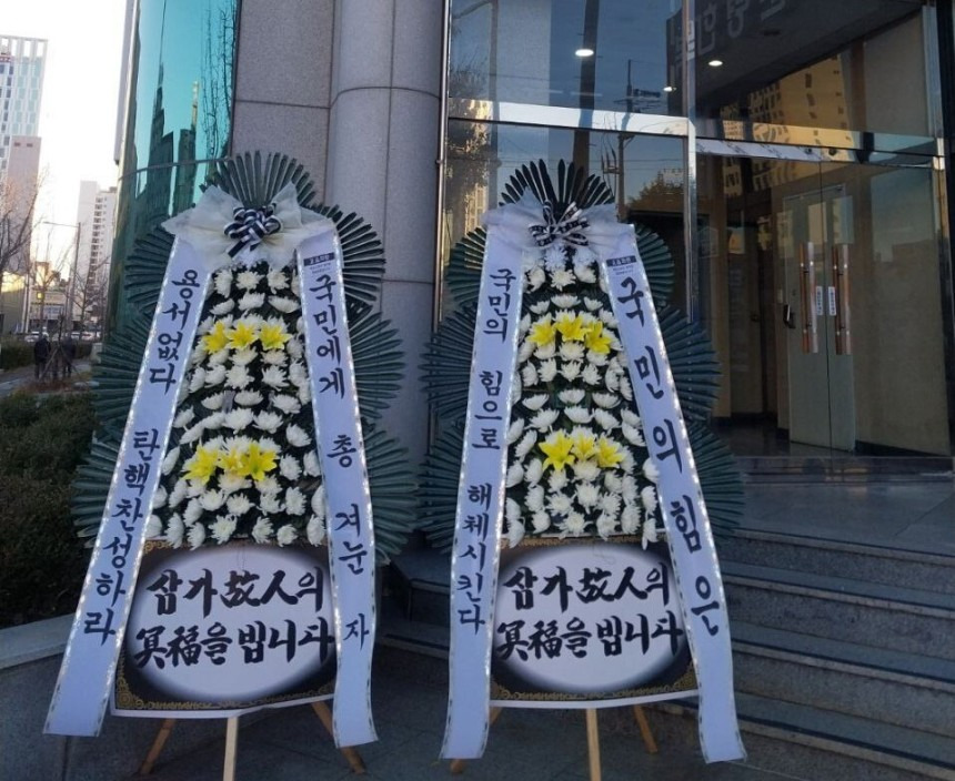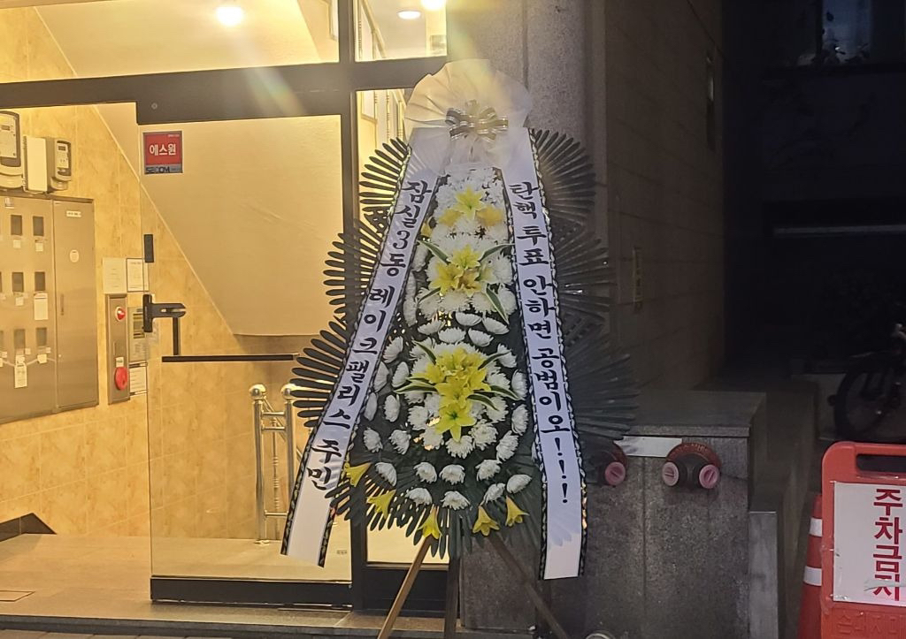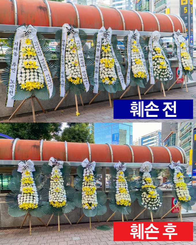 (배현진 인기 많네요 바로바로 치워서 그런지 새로운 화환들이 많습니다.)