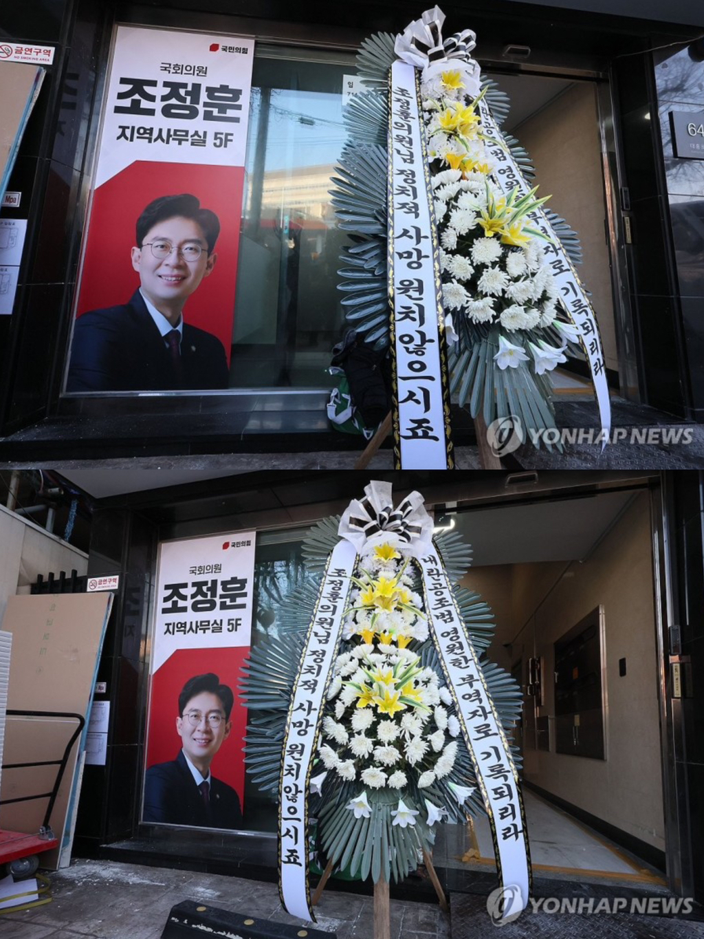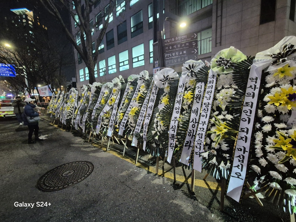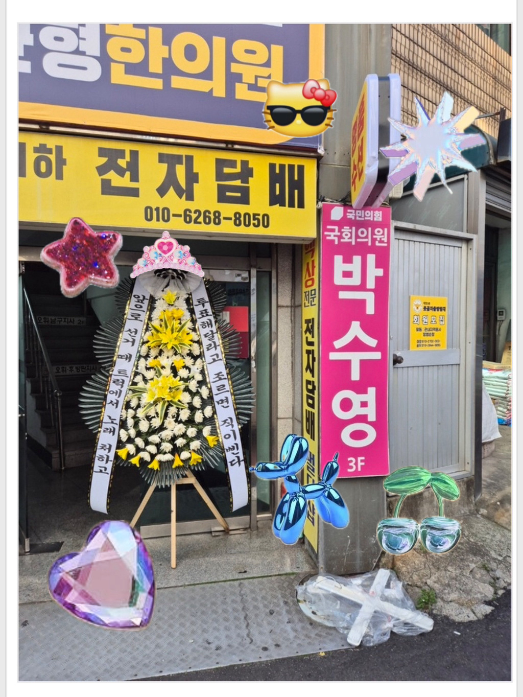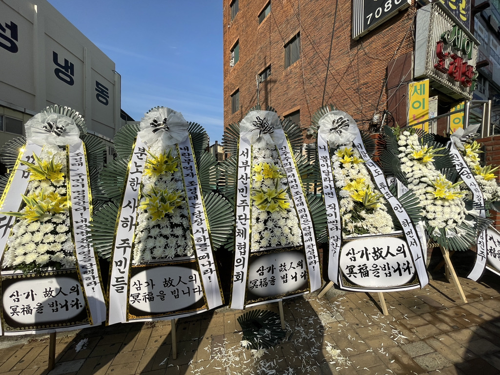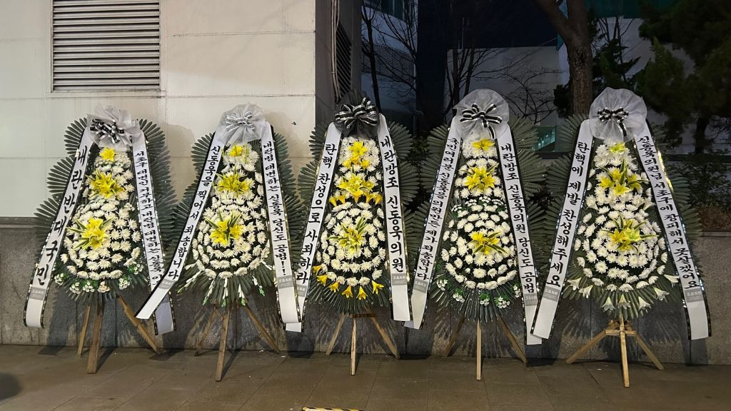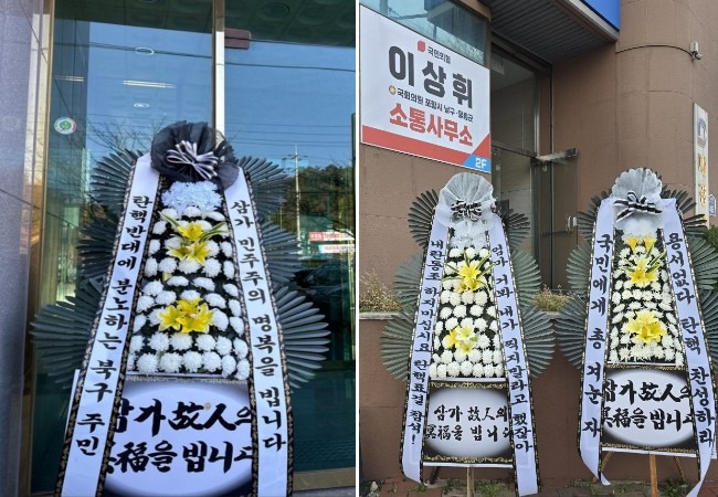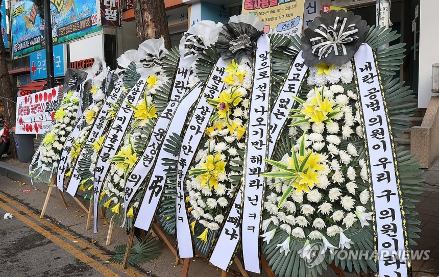 (배현진 인기 많네요 바로바로 치워서 그런지 새로운 화환들이 많습니다.)