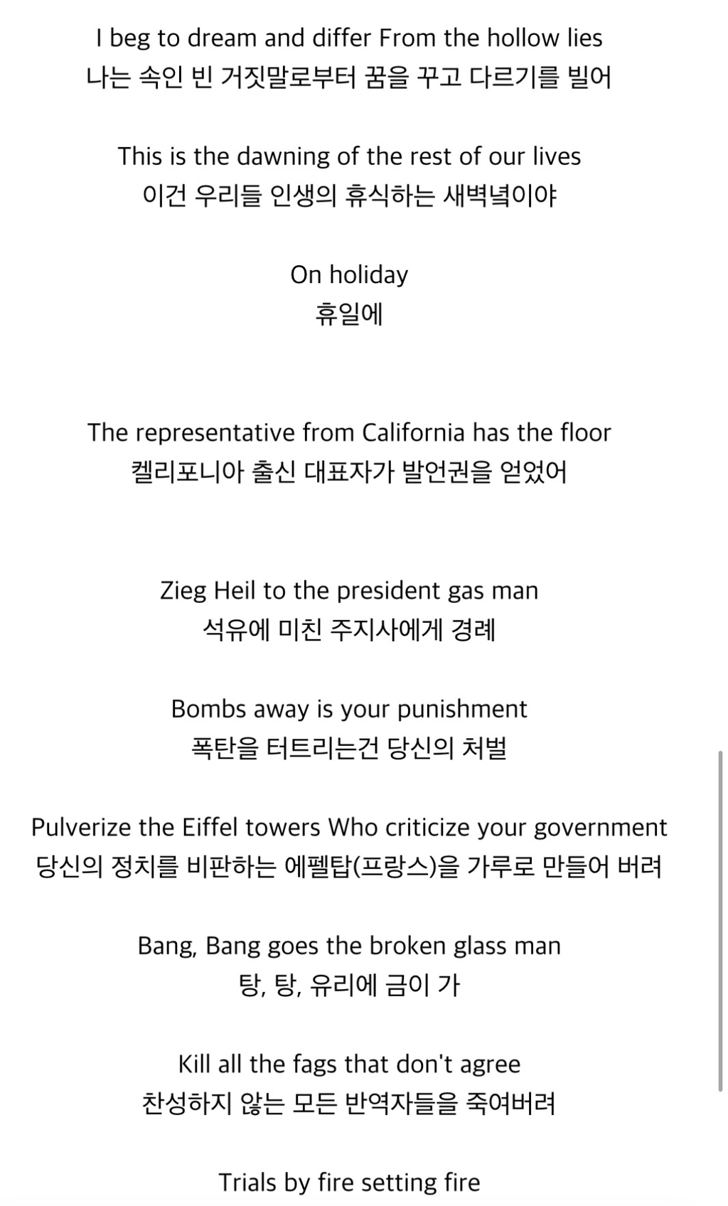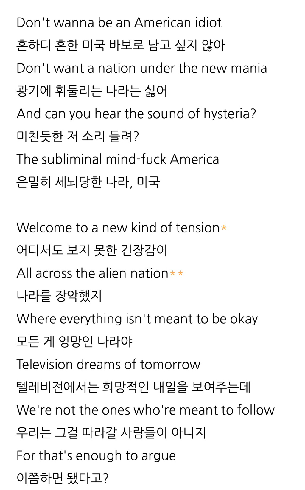 American idiot이라는 미국비판하는 노래를 발매했으며