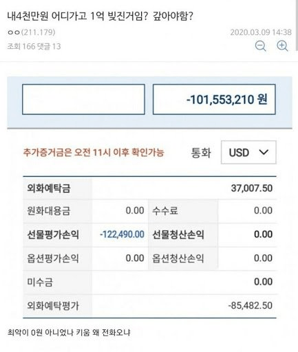 [스크랩] [흥미돋]내 4천만원 어디가고 1억 빚진거임? 갚아야함? 작성자유엠|작성시간24.12.14|조회수15,936 목록 댓글 34 글자크기 작게가 글자크기 크게가 다음검색 스크랩 원문 : 도탁스 (DOTAX) 현재 게시글 추가 기능 열기 북마크 공유하기 신고 센터로 신고 댓글 댓글 34 댓글쓰기 답글쓰기 댓글 리스트 작성자긁? 긁? 긁? | 작성시간 24.12.14 아 진짜 저 마이너스 찍힌 숫자 보기만 해도 숨막히고 끔찍해.. 작성자도롱도 | 작성시간 24.12.14 모르면서 왜 들어간거야 어쩌누.. 작성자햄스터지니 | 작성시간 24.12.14 으이구인간아 작성자훗냐냐냐 | 작성시간 24.12.14 이새낀 진짜 선물이 기프트인줄아나 작성자플리스 | 작성시간 24.12.14 열심히 갚어라 댓글 전체보기