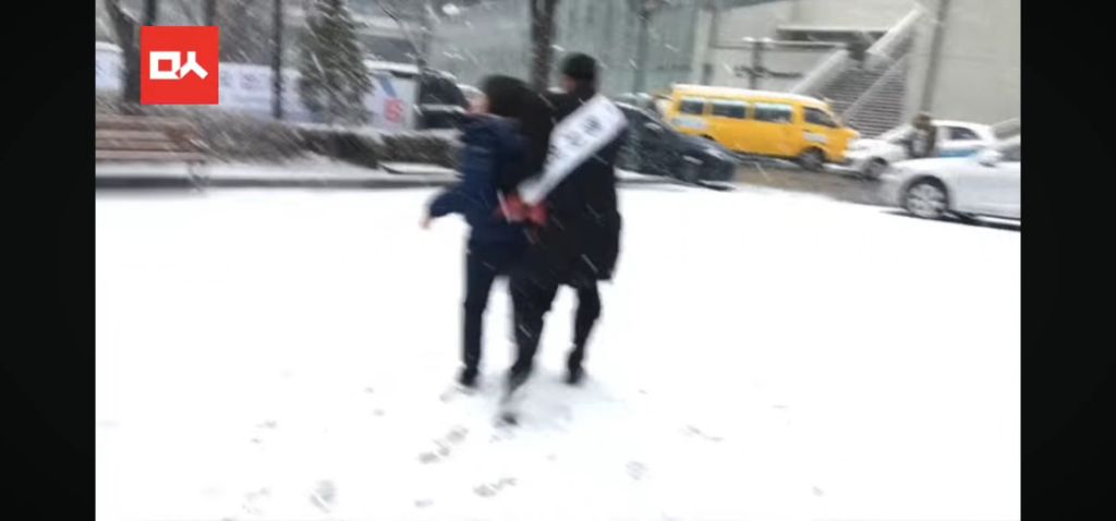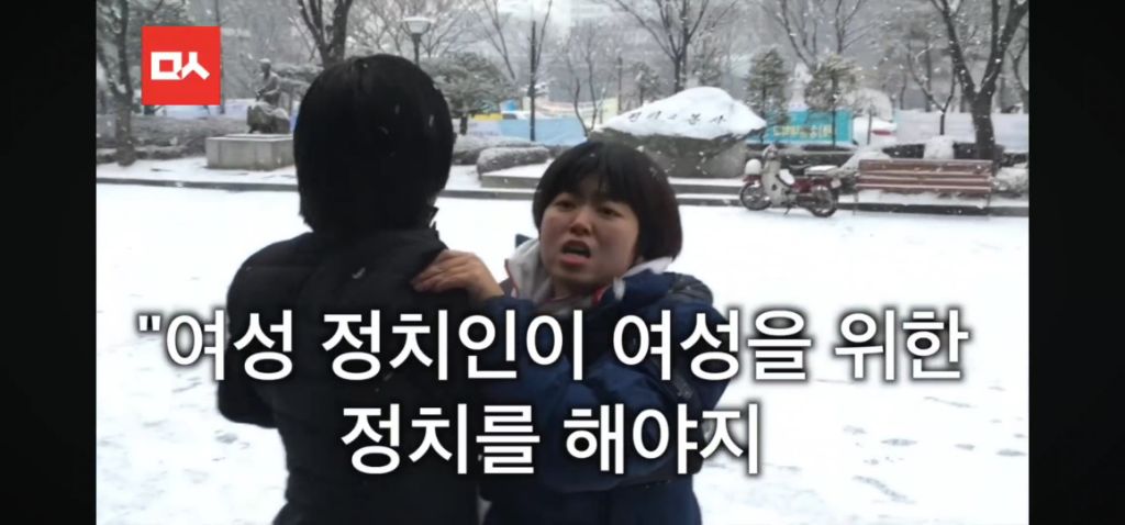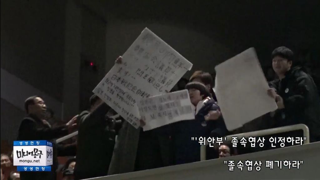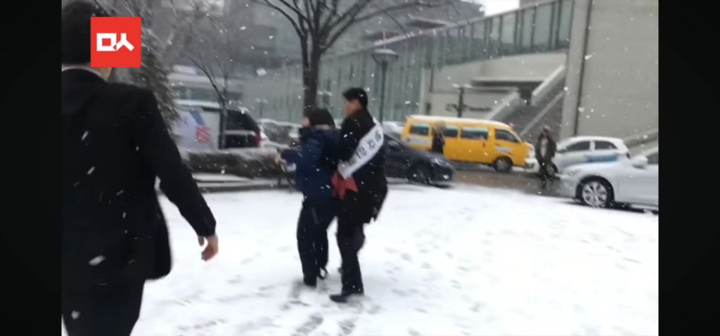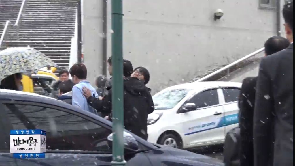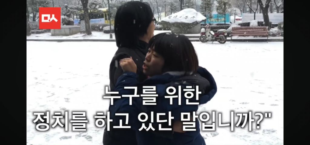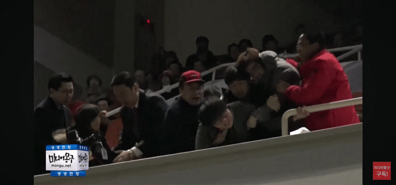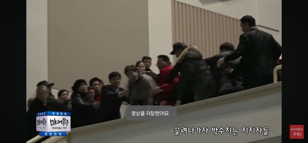 그리고 학생들의 종이를 찢어버리는 나경원 지지자들